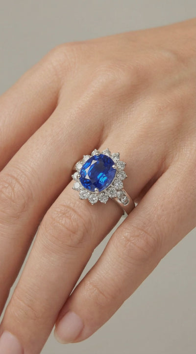 2.00ct Oval Blue Sapphire, Diamond Engagement Ring set in Platinum