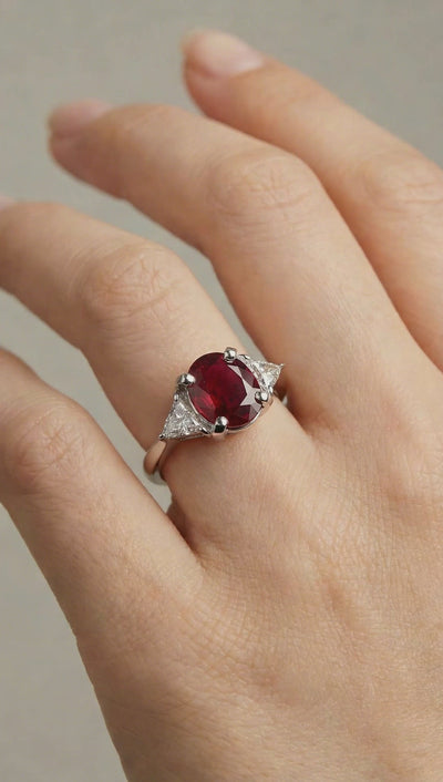1.18ct Oval Red Ruby, Diamond Cluster Engagement Ring set in Platinum