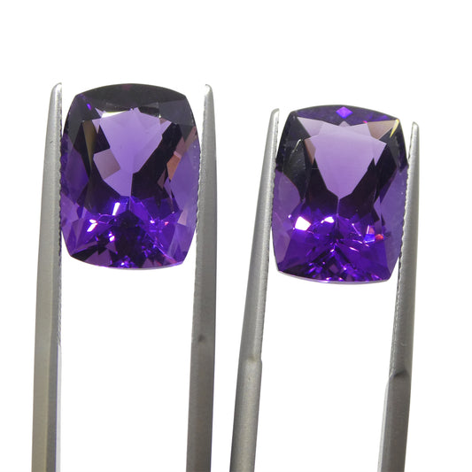 13.62ct Pair Cushion Purple Amethyst from Uruguay