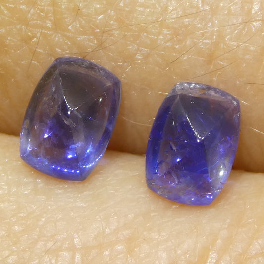 1.85ct Pair (2) Cushion Sugarloaf Cabochon Blue Sapphires from Burma
