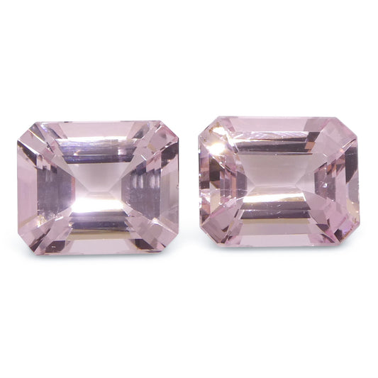 5.74ct Pair (2) Octagonal/Emerald Cut Orangy Pink Morganite