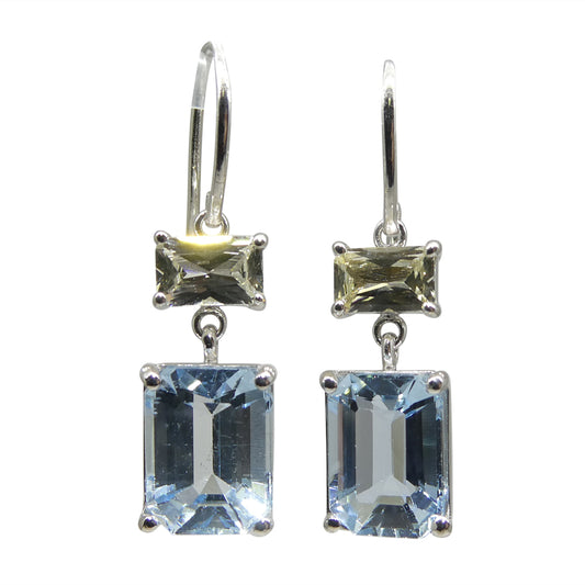 5.53ct Blue Aquamarine & Yellow Sapphire Earrings set in 14k White Gold
