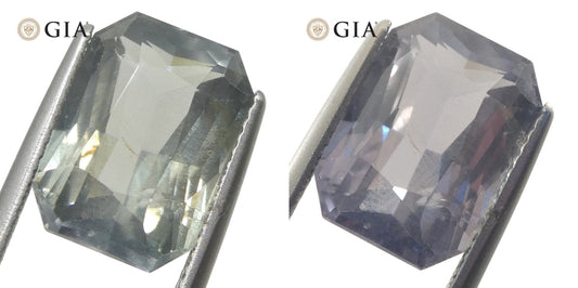 10.03ct Octagonal/Emerald Cut Grayish Greenish Blue to Grayish Purple Sapphire GIA Certified Tanzania Unheated