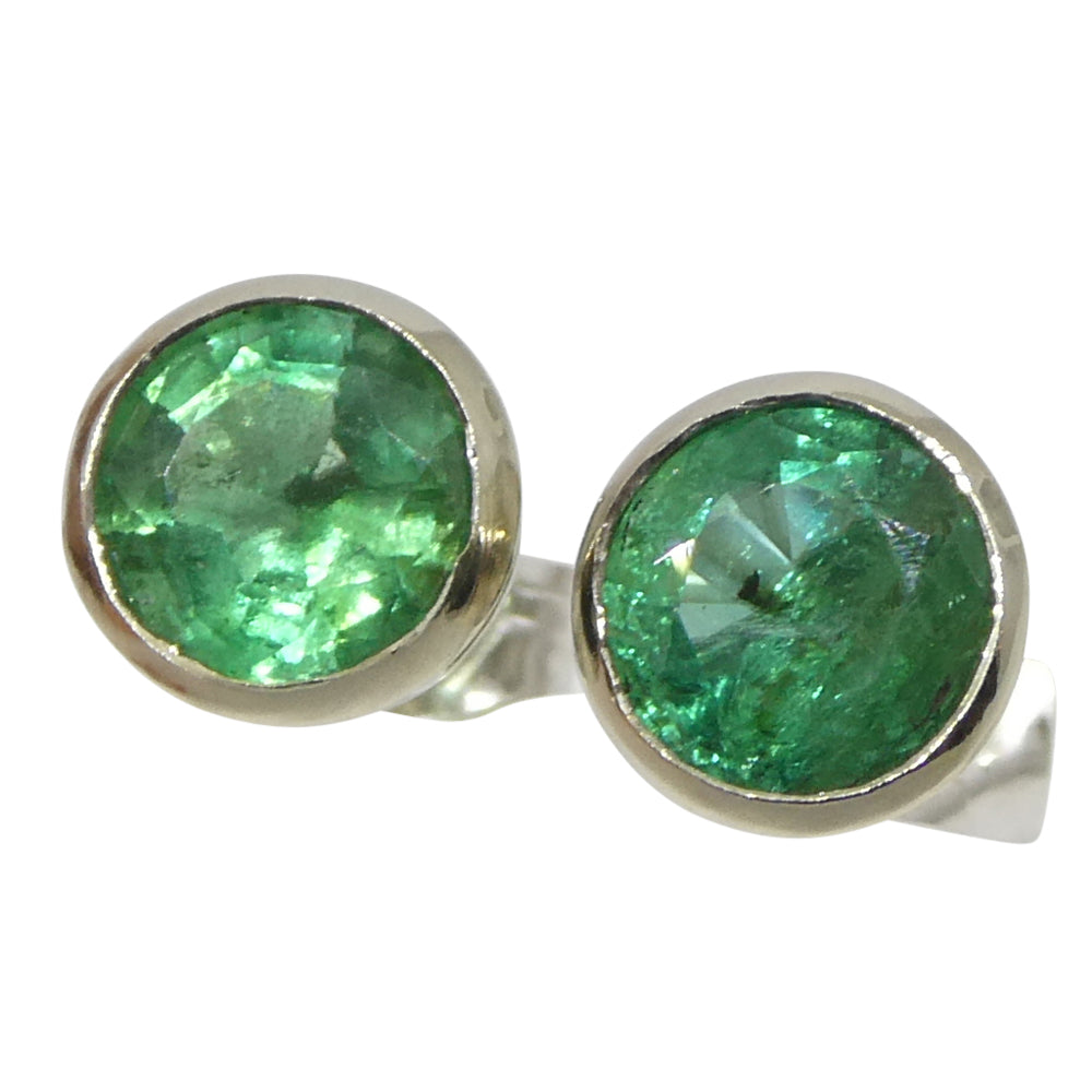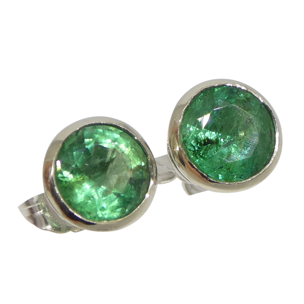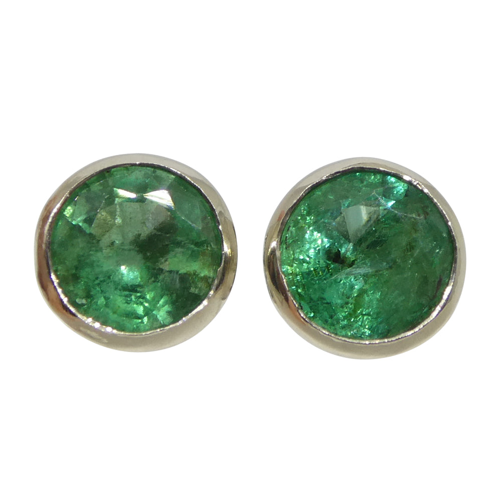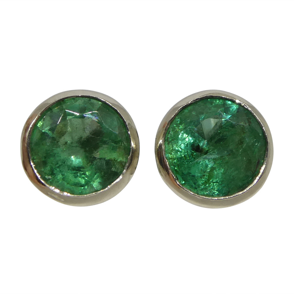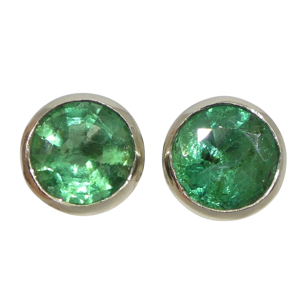 Elevate your elegance with these exquisite 1.04 ct Round Green Emerald Stud Earrings, masterfully bezel set in 14k White Gold. Perfectly designed for the discerning individual, these earrings encapsulate timeless beauty and sophistication.