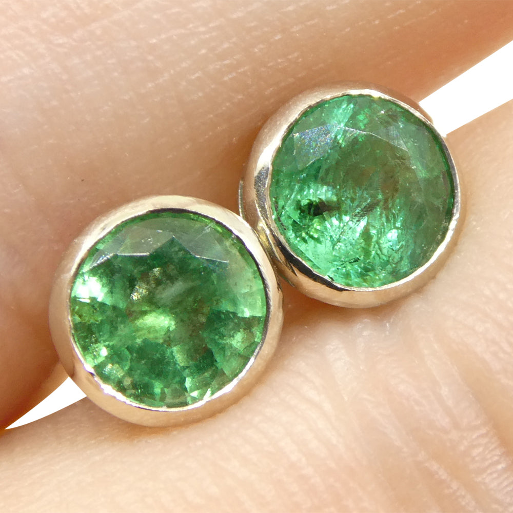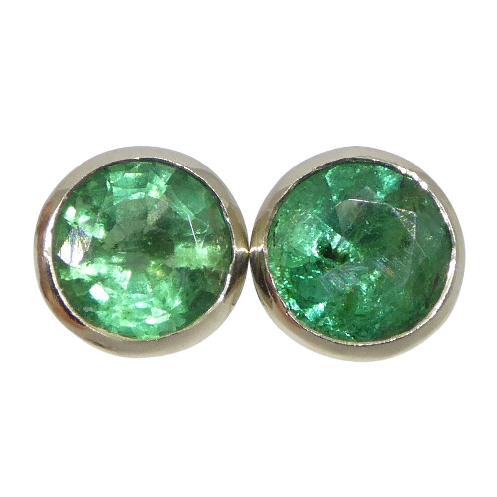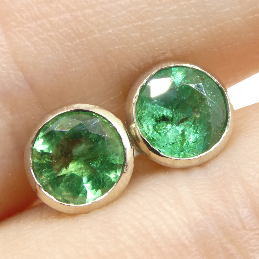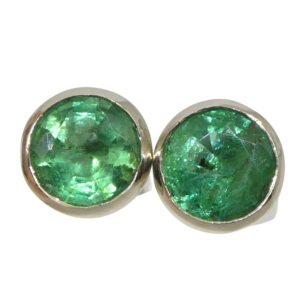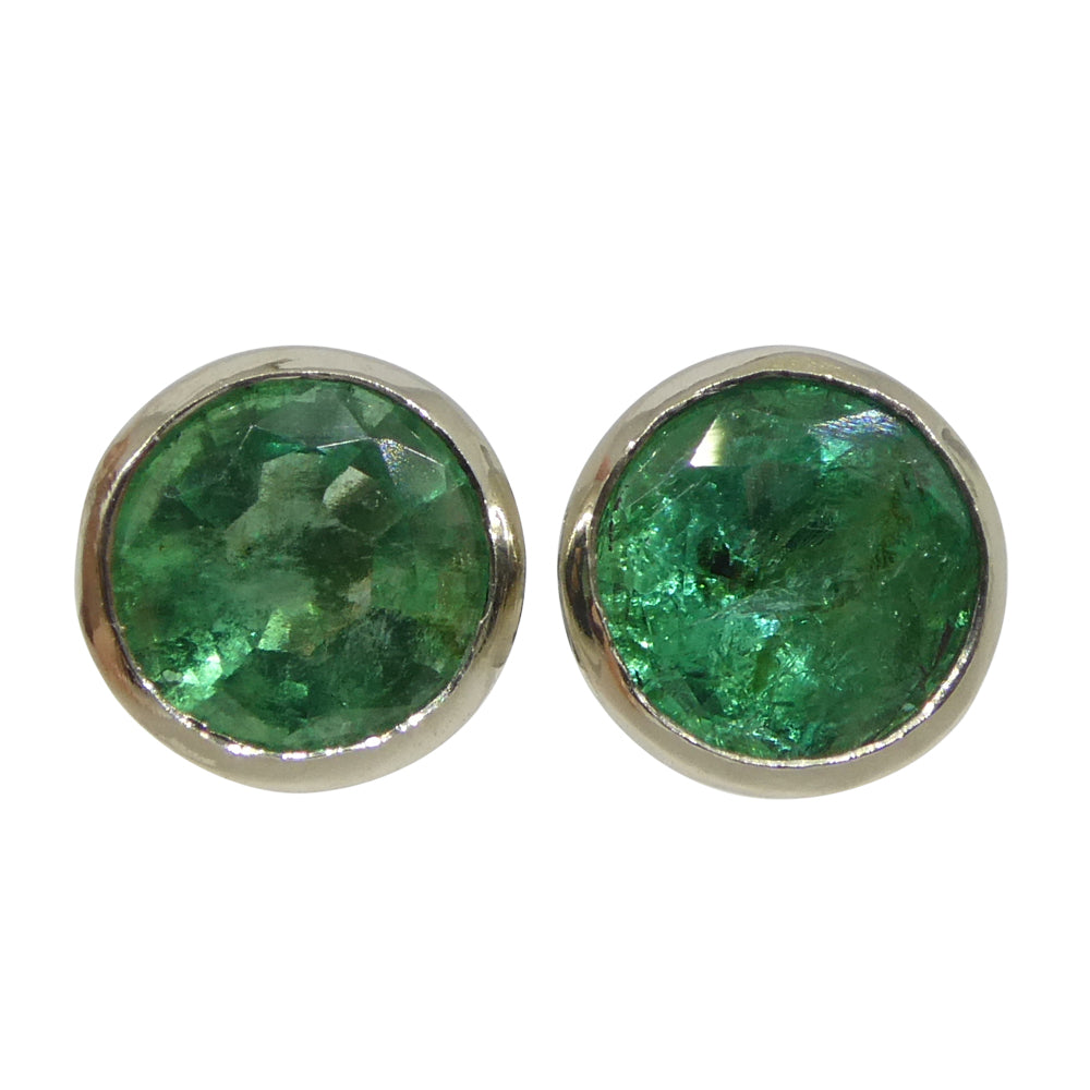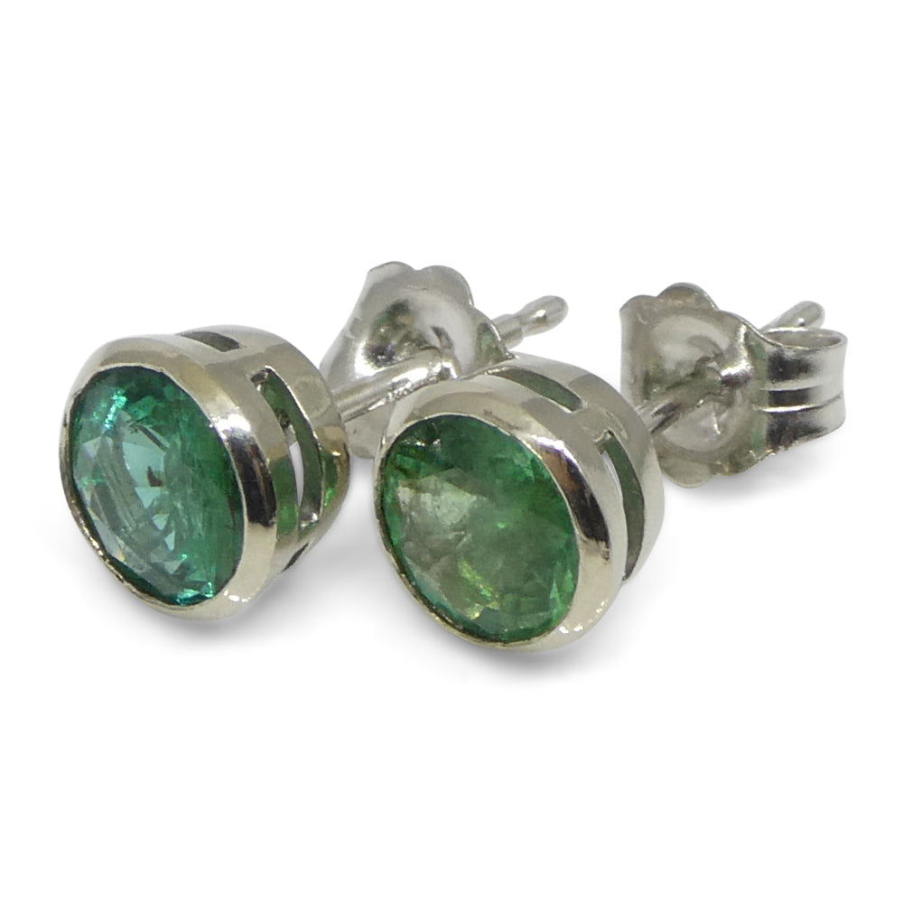 Elevate your elegance with these exquisite 1.04 ct Round Green Emerald Stud Earrings, masterfully bezel set in 14k White Gold. Perfectly designed for the discerning individual, these earrings encapsulate timeless beauty and sophistication.