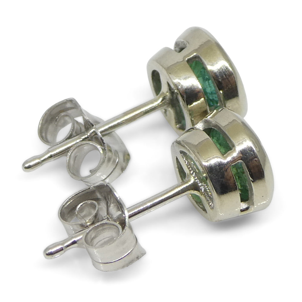 1.04ct Round Green Emerald Stud Earrings set in 14k White Gold