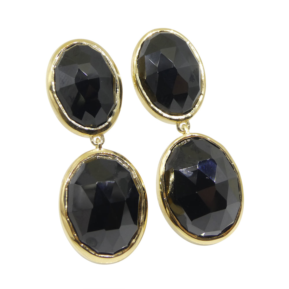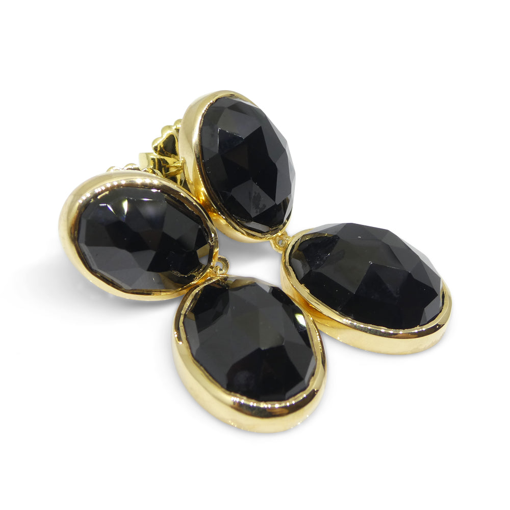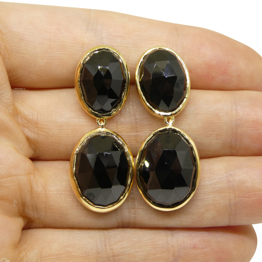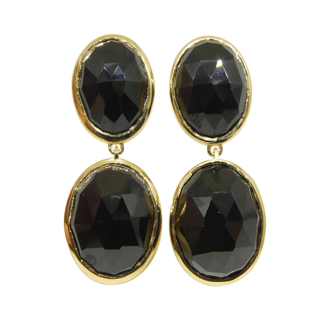 38cts Black Spinel Earrings set in Sterling Silver Plated 18k Yellow Gold Vermeil