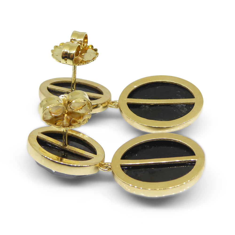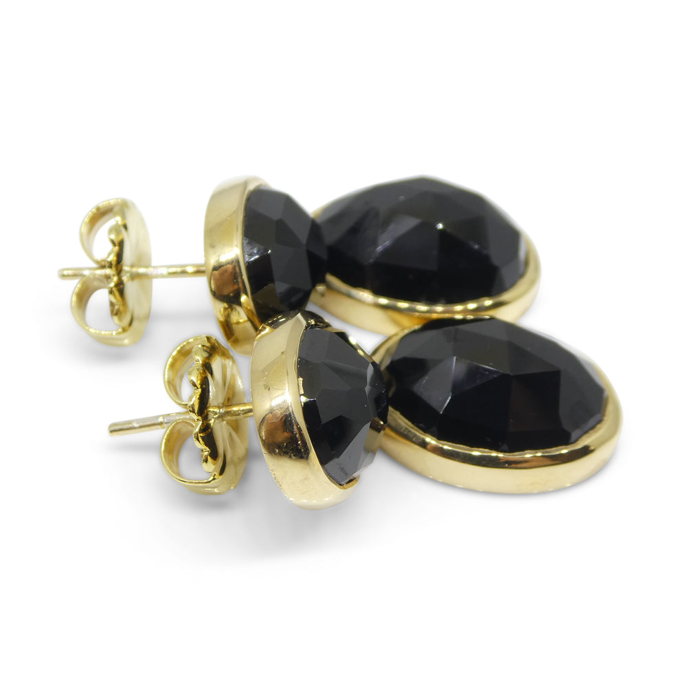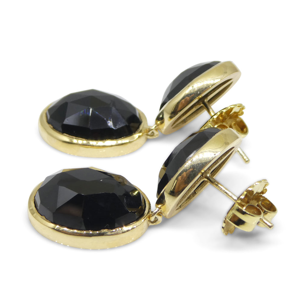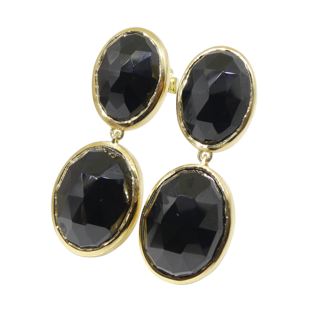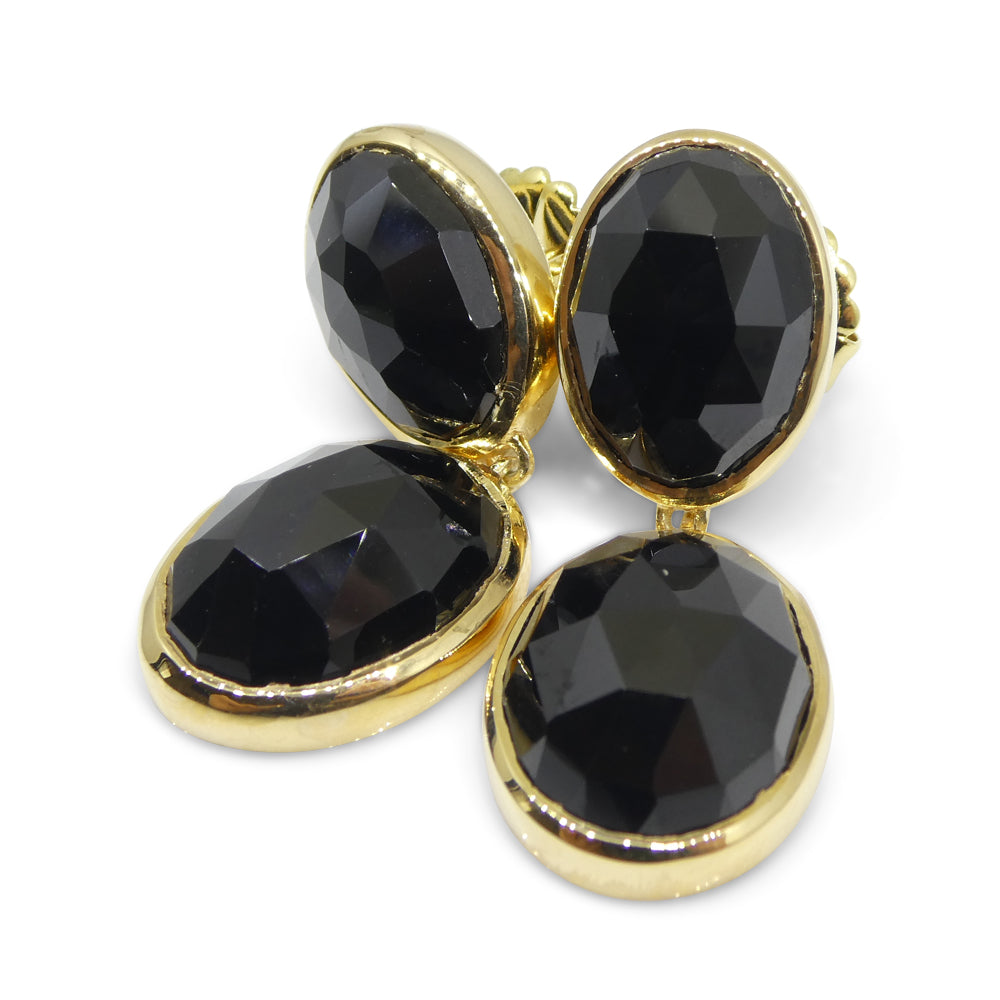 38cts Black Spinel Earrings set in Sterling Silver Plated 18k Yellow Gold Vermeil