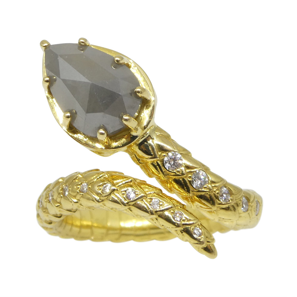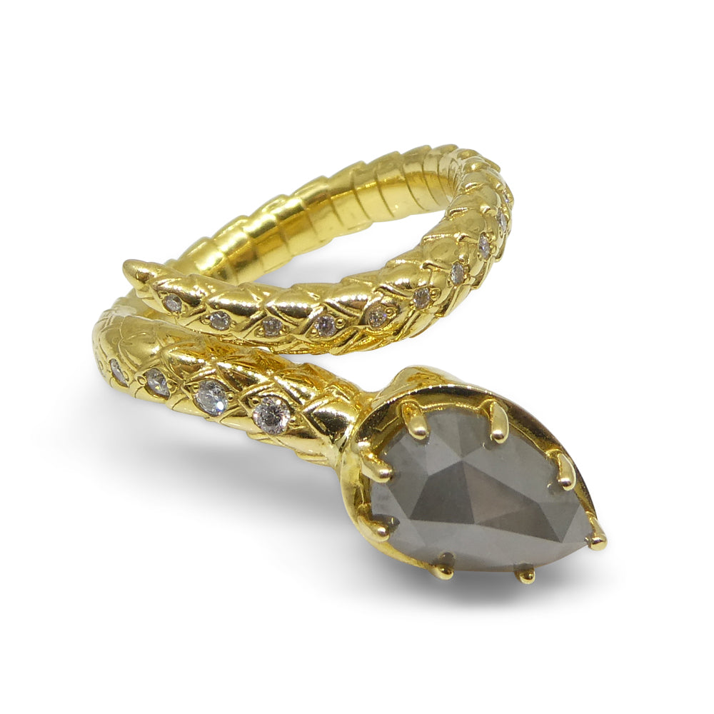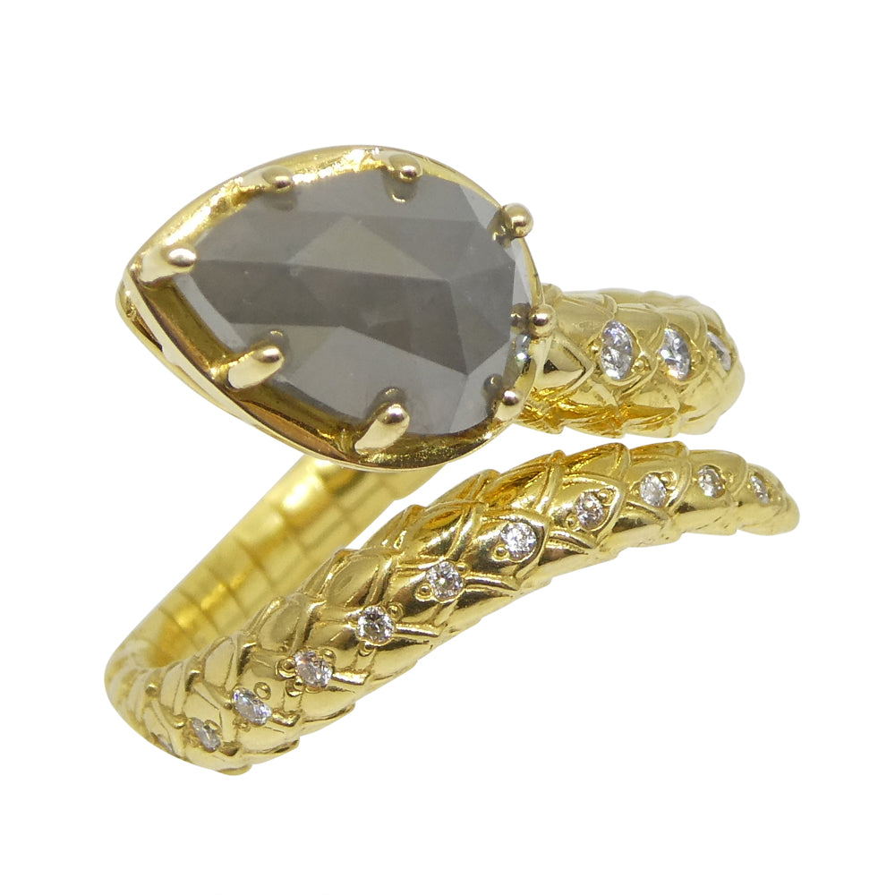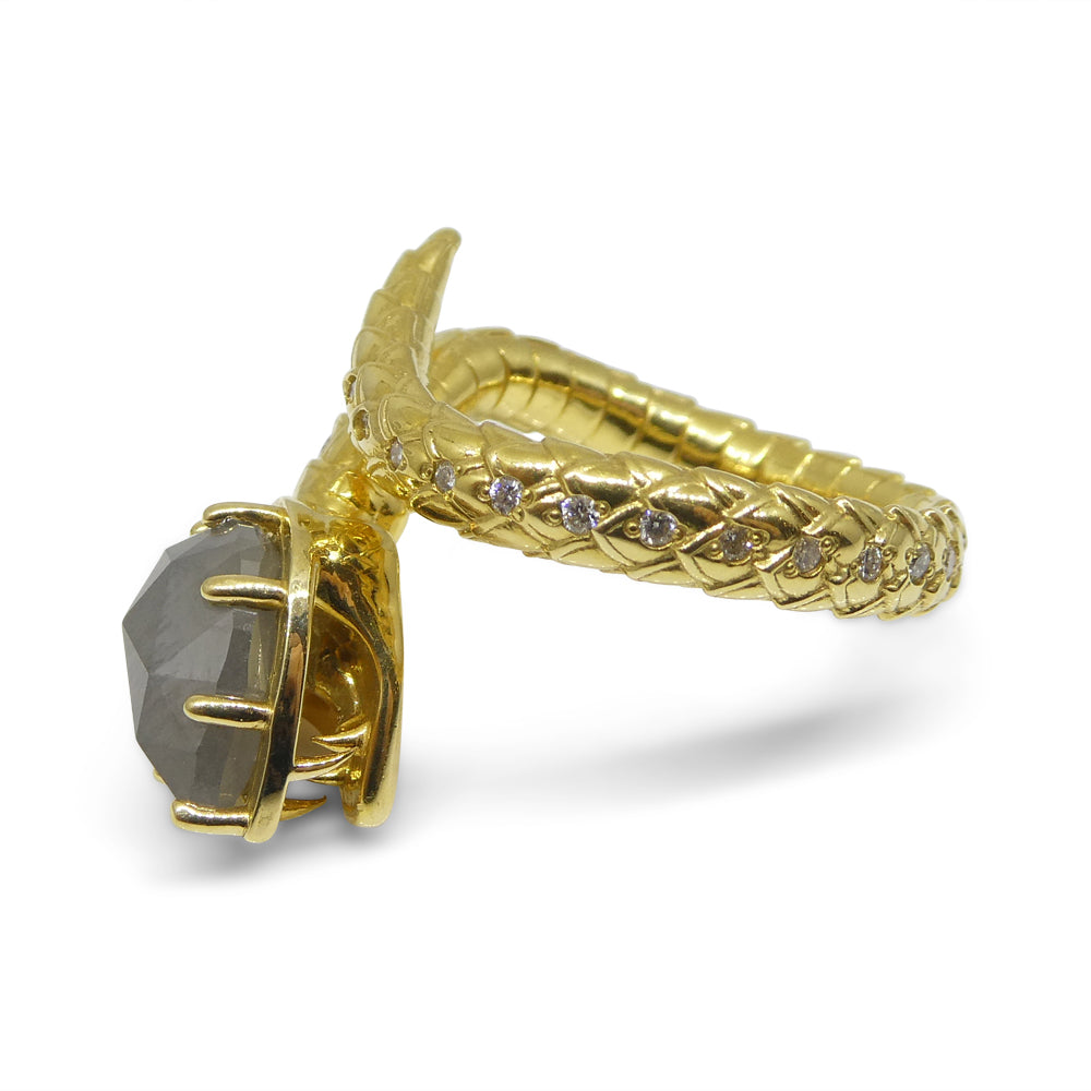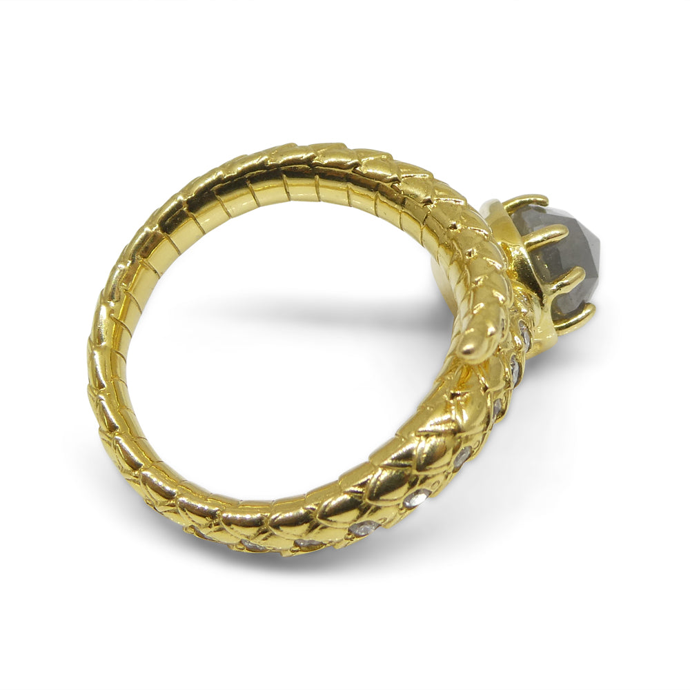 3.45ct Grey & White Diamond Statement Snake Ring set in 18k Yellow Gold