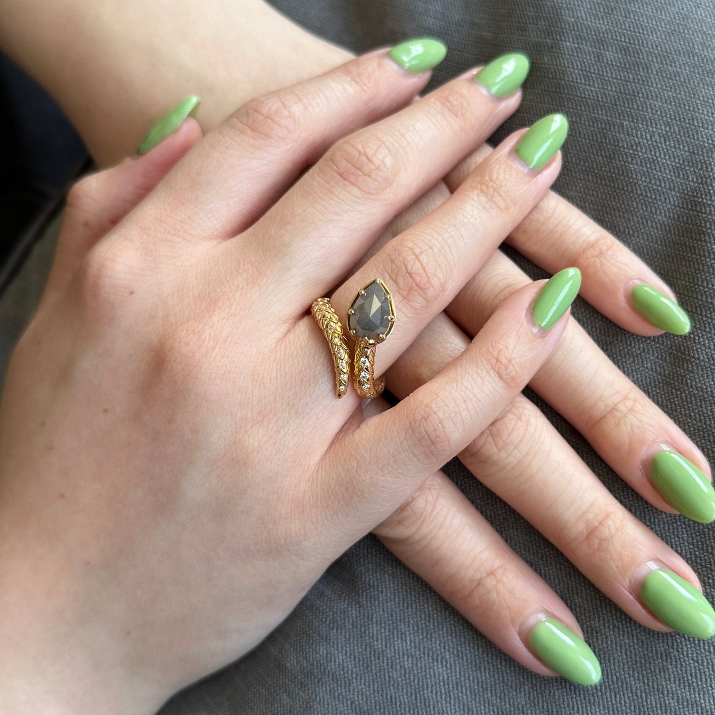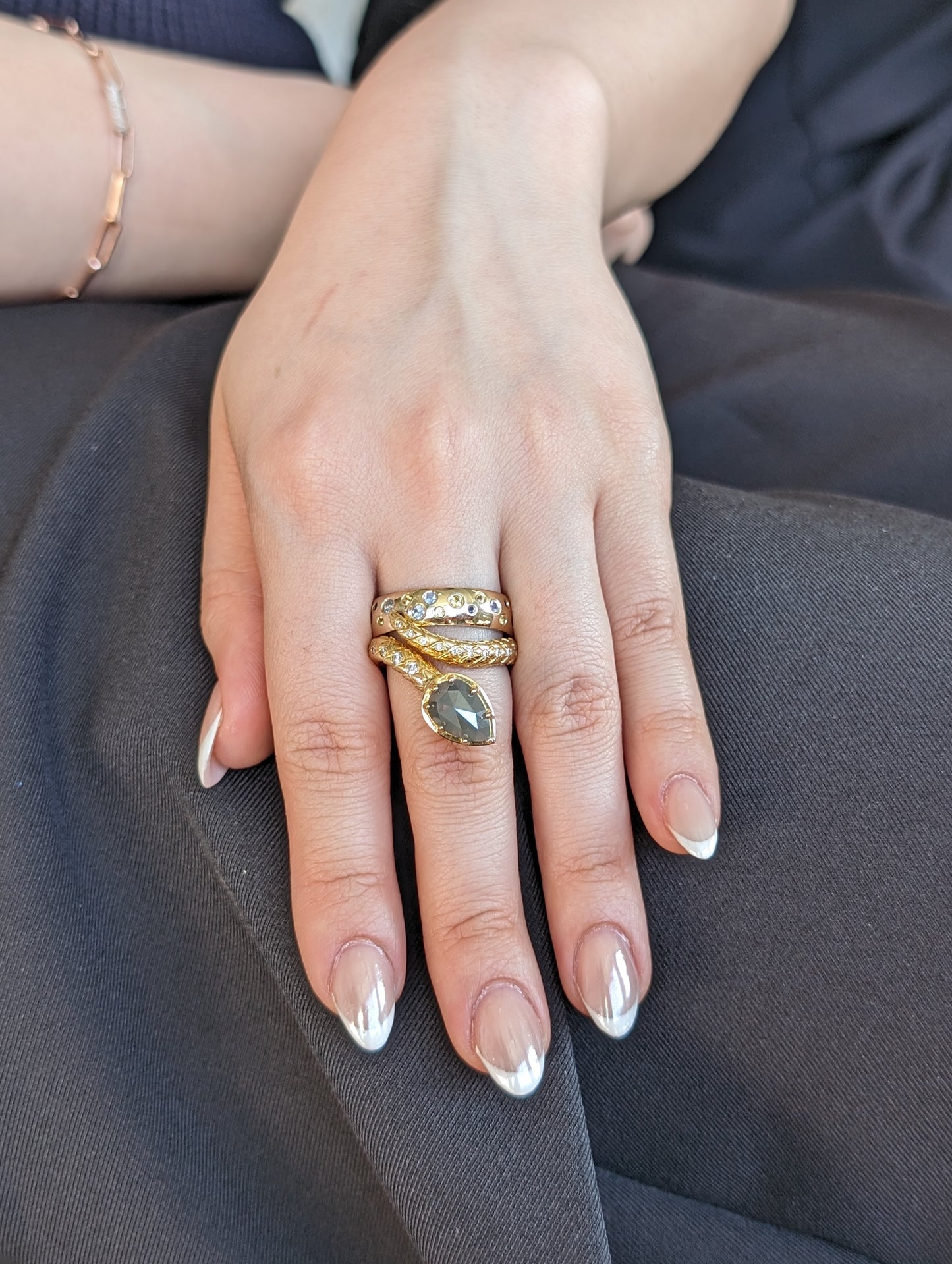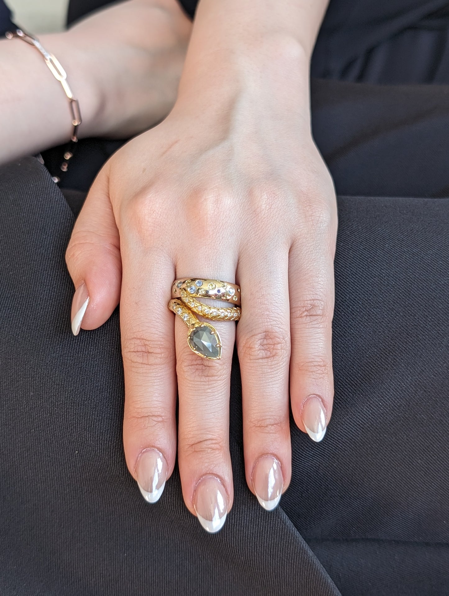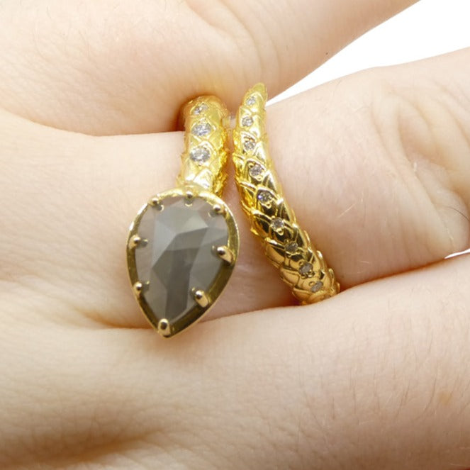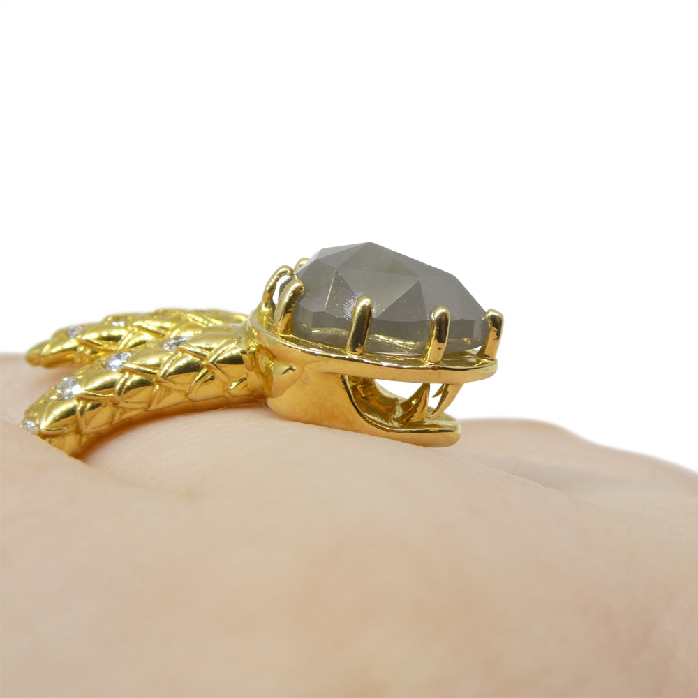 3.45ct Grey & White Diamond Statement Snake Ring set in 18k Yellow Gold