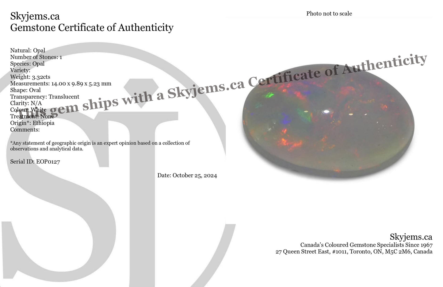 3.32ct Oval Cabochon White Crystal Opal from Ethiopia
