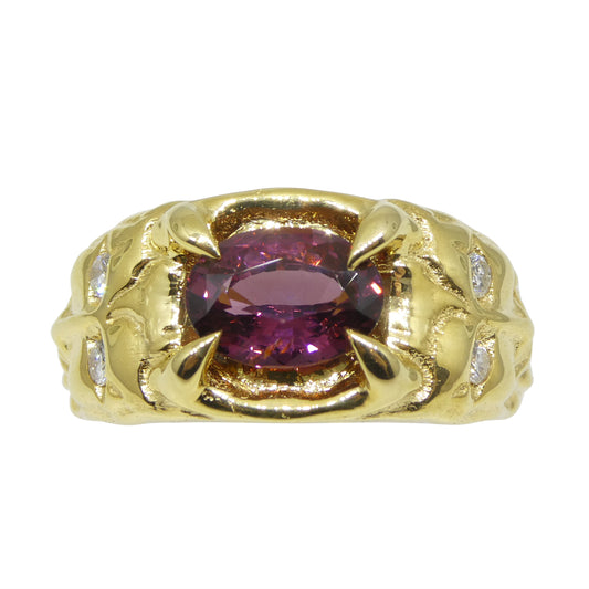 2.11ct Pink Spinel, Diamond Devil Mask Ring set in 14k Yellow Gold
