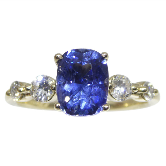 1.63ct Cushion Blue Sapphire, Diamond Engagement Ring set in 14k Yellow Gold, IGI Certified