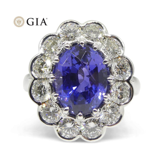 3.98ct Oval Blue Sapphire, Diamond Ring set in 18k White Gold, GIA Certified, Sri Lanka