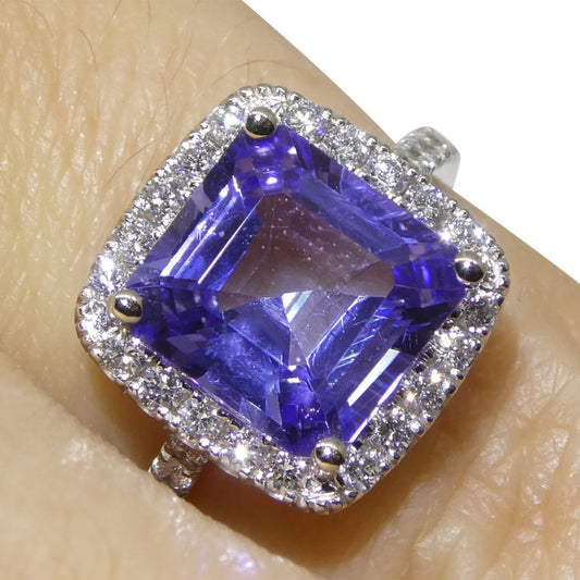 2.55ct Square Violet Blue Tanzanite, Diamond Engagement Ring set in 14k White Gold