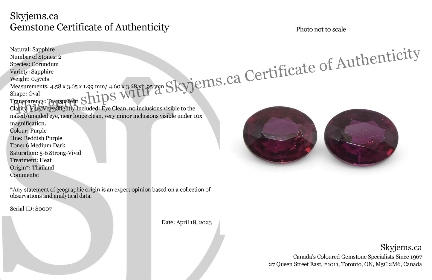 0.57ct Pair Oval Purple Sapphire from Thailand