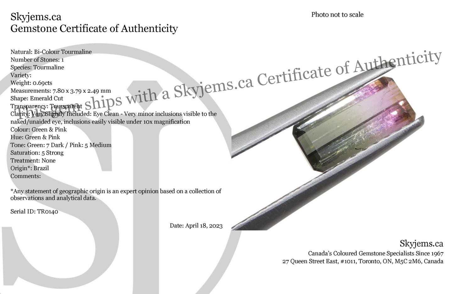 0.69ct Emerald Cut Green & Pink Bi-Colour Tourmaline