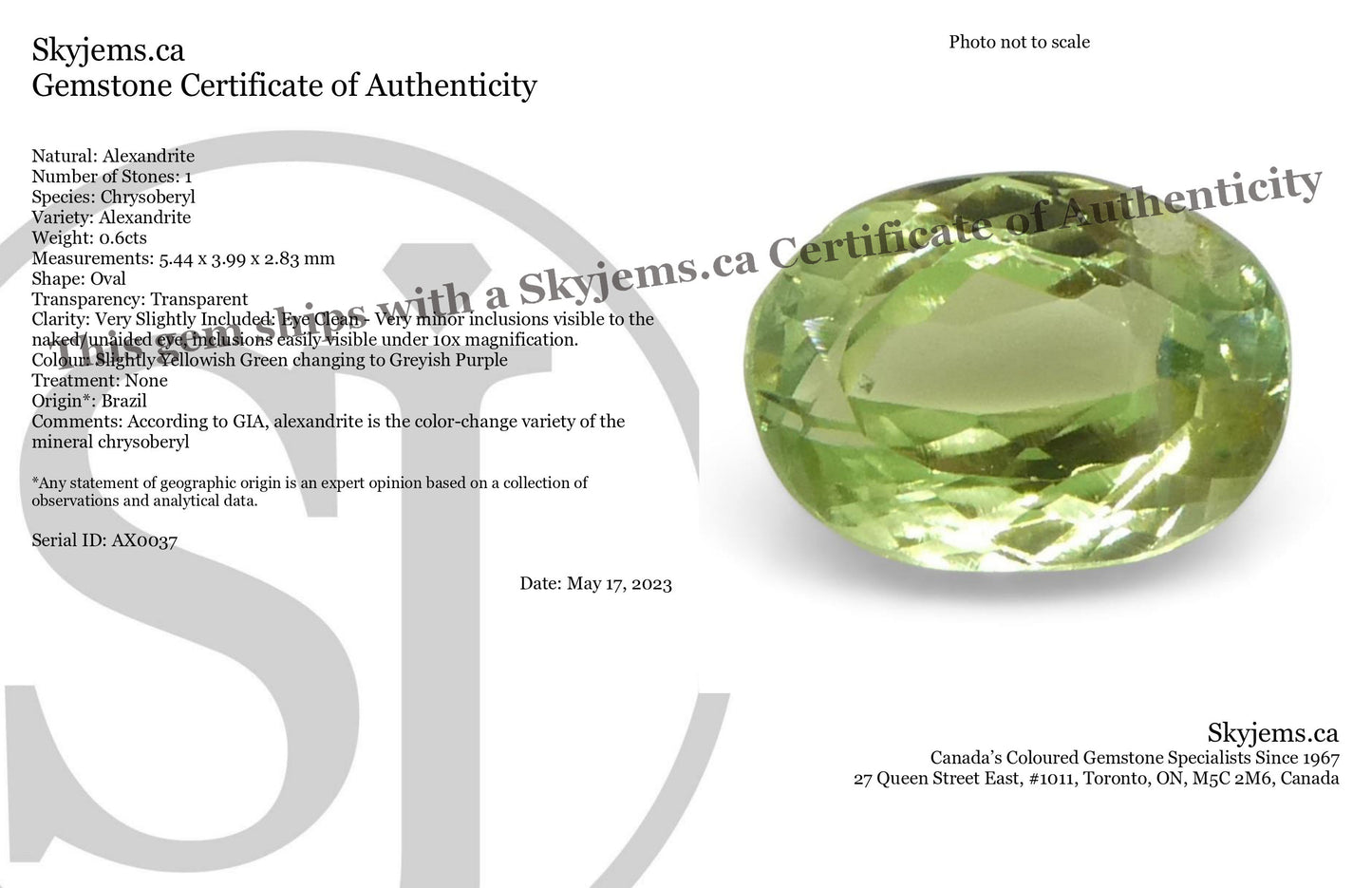 0.6ct Oval Yellowish Green to Greyish Purple Alexandrite from Brazil, Unheated