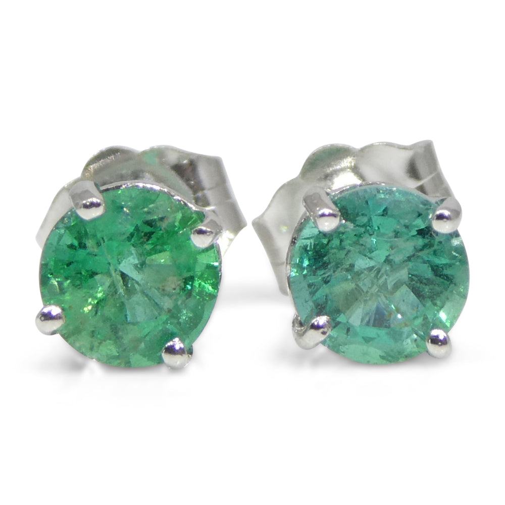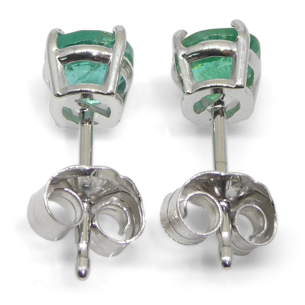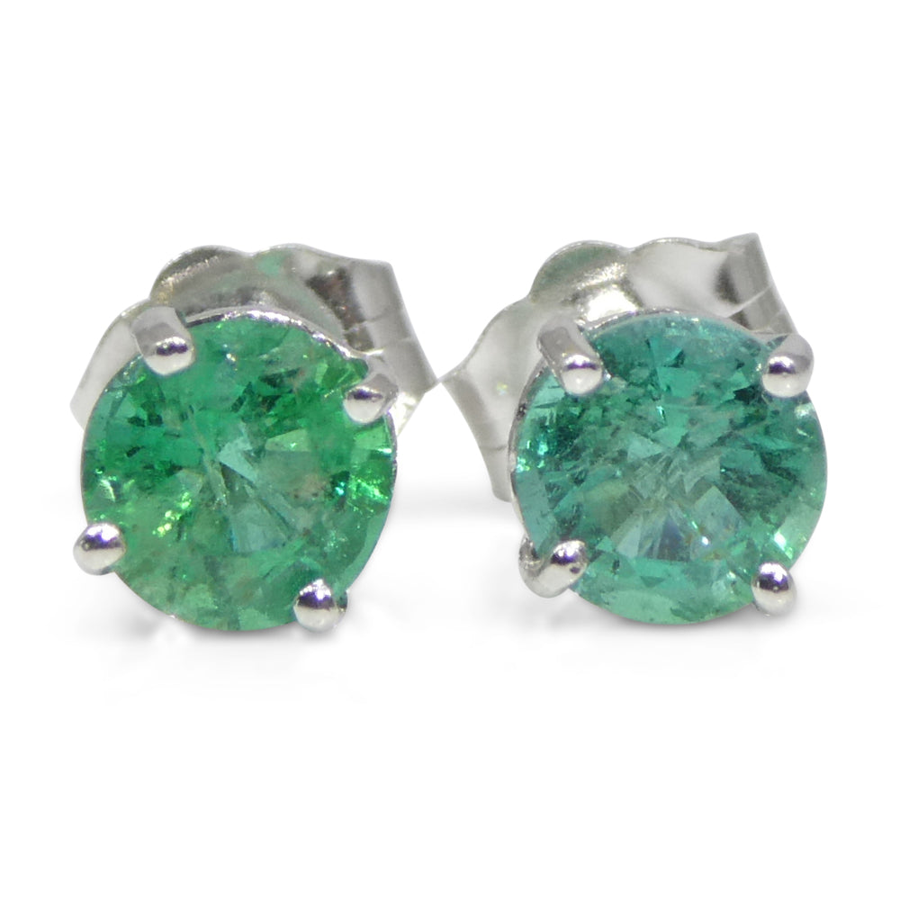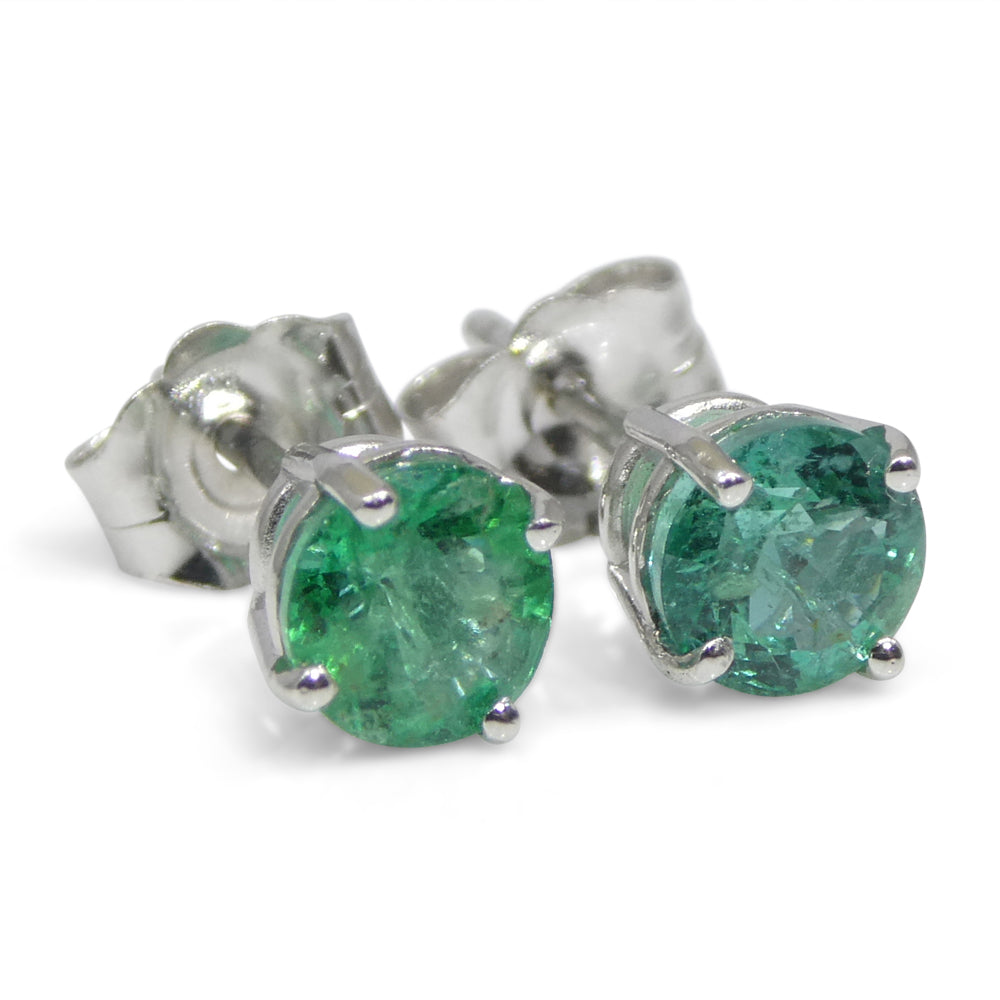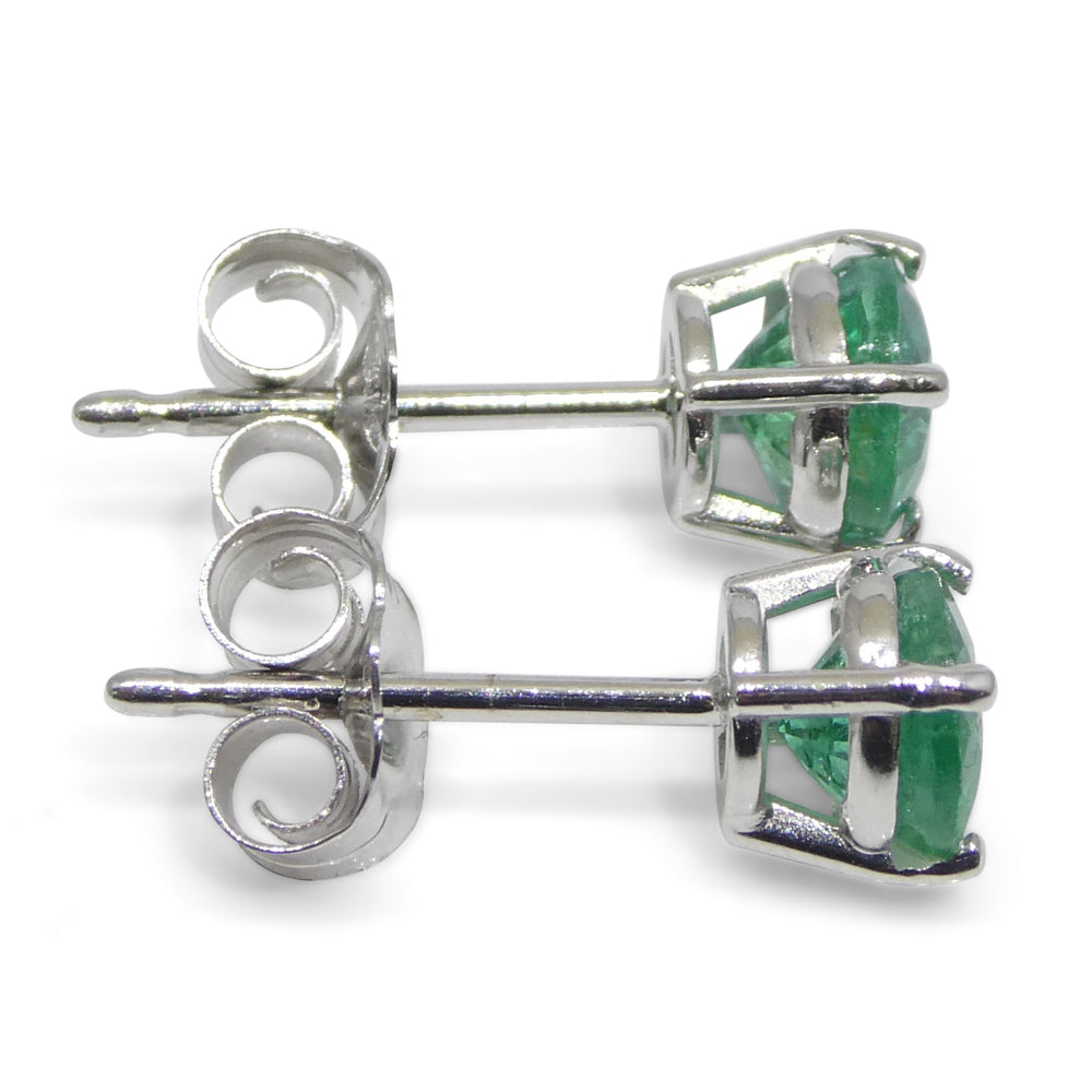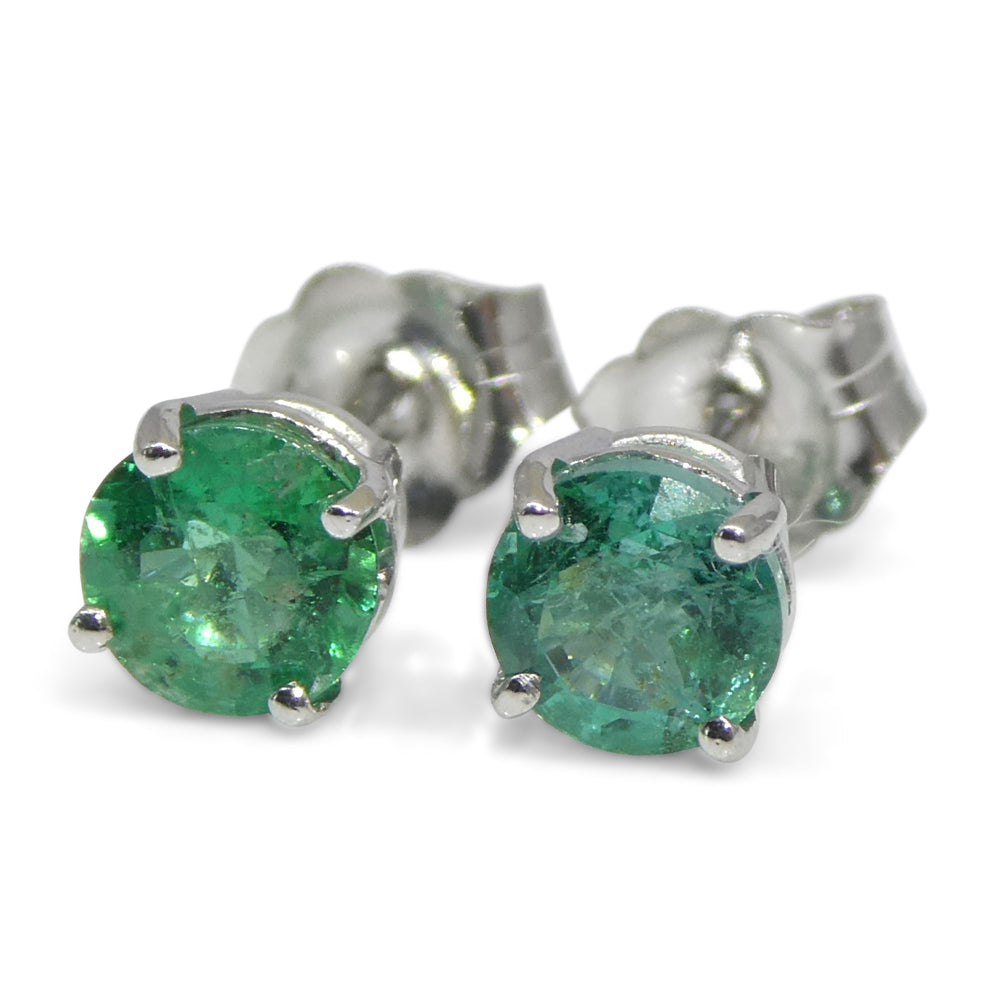 0.73ct Pair Round Green Emerald Stud Earrings set in 14k White Gold