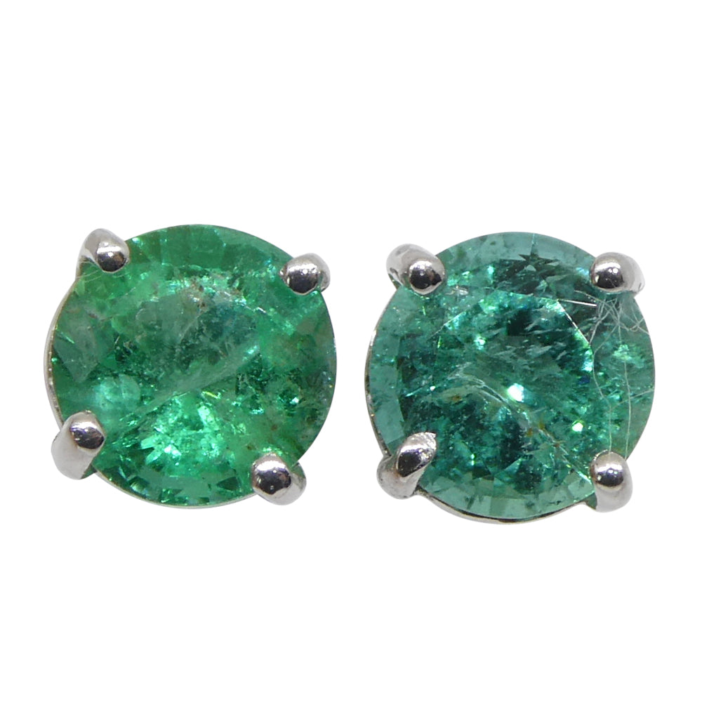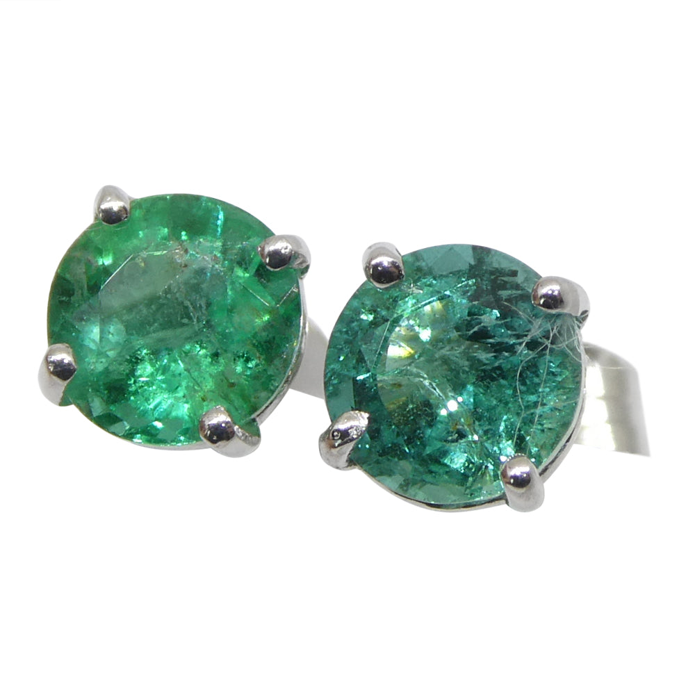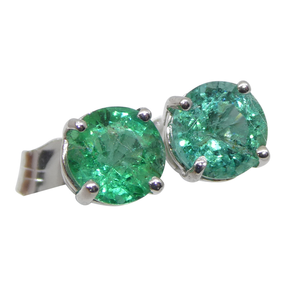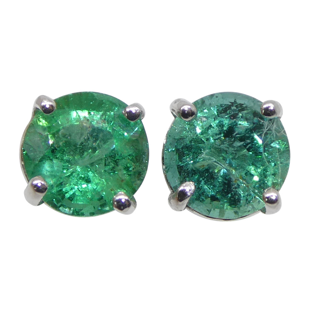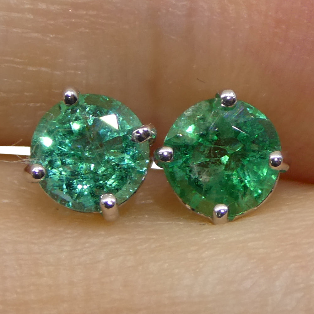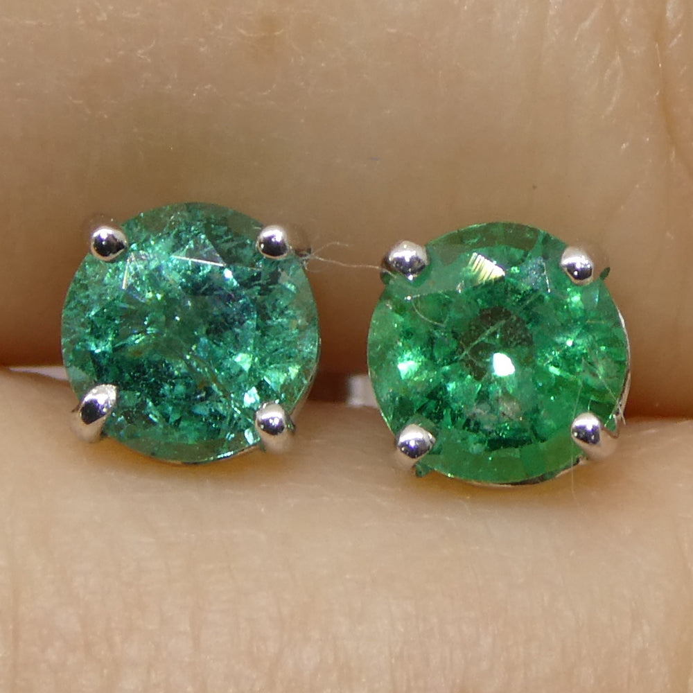 0.73ct Pair Round Green Emerald Stud Earrings set in 14k White Gold