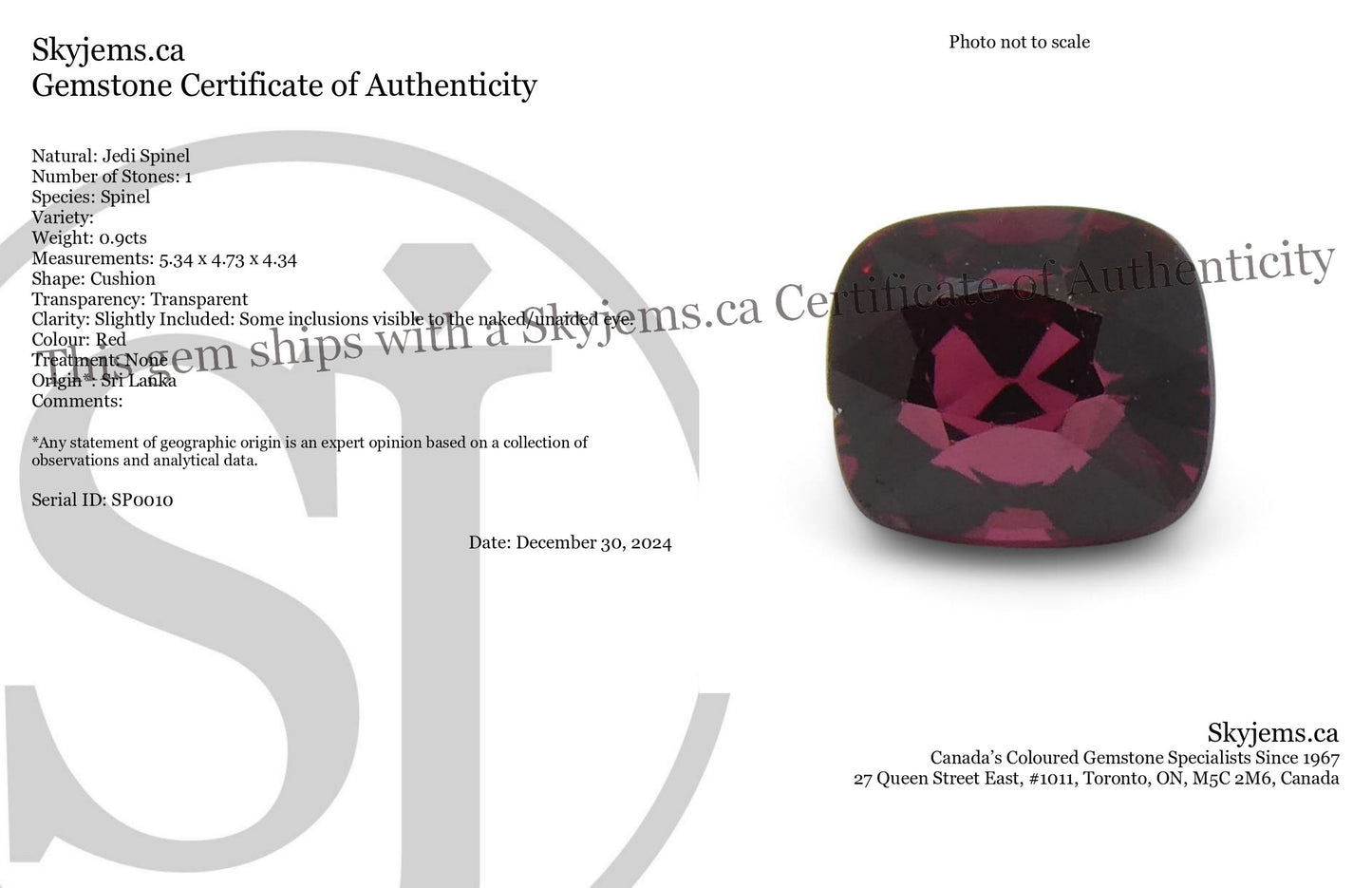 0.9ct Cushion Red Jedi Spinel from Sri Lanka