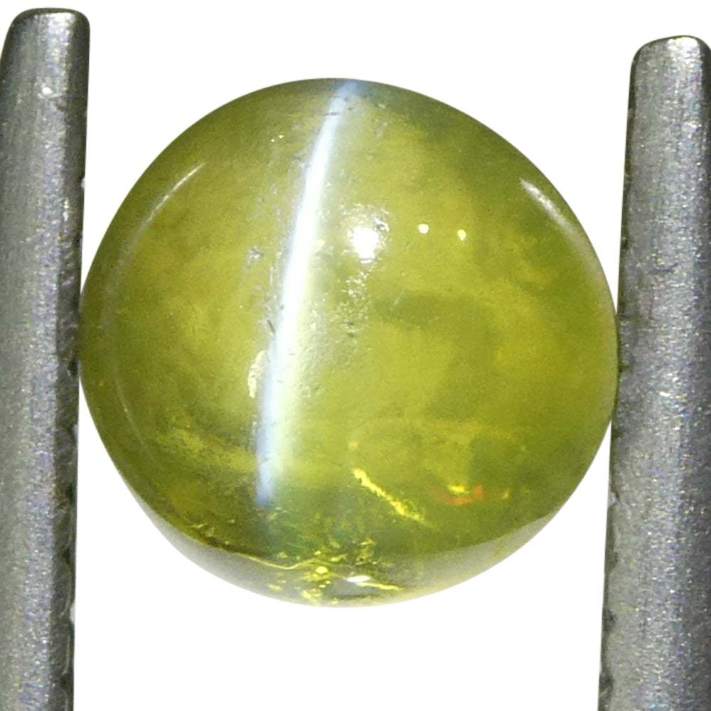 1.02ct Round Cabochon Greenish Yellow Cats Eye Chrysoberyl