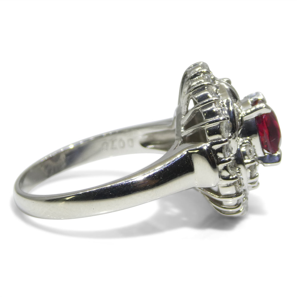 1.04ct Cushion Red Ruby, Diamond Cluster Engagement Ring set in Platinum