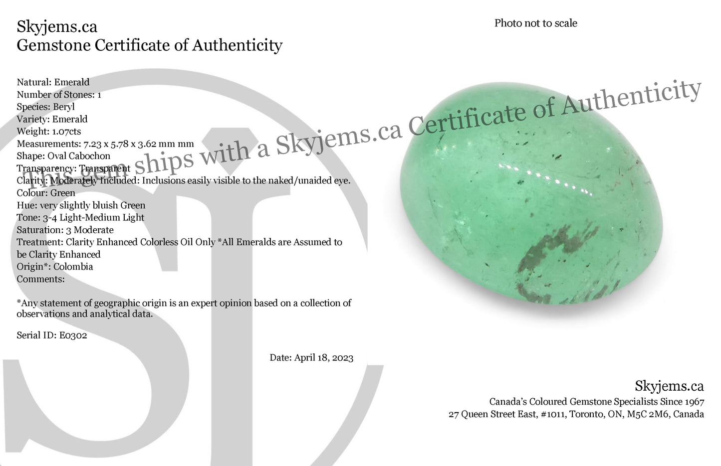 1.07ct Oval Cabochon Green Emerald from Colombia