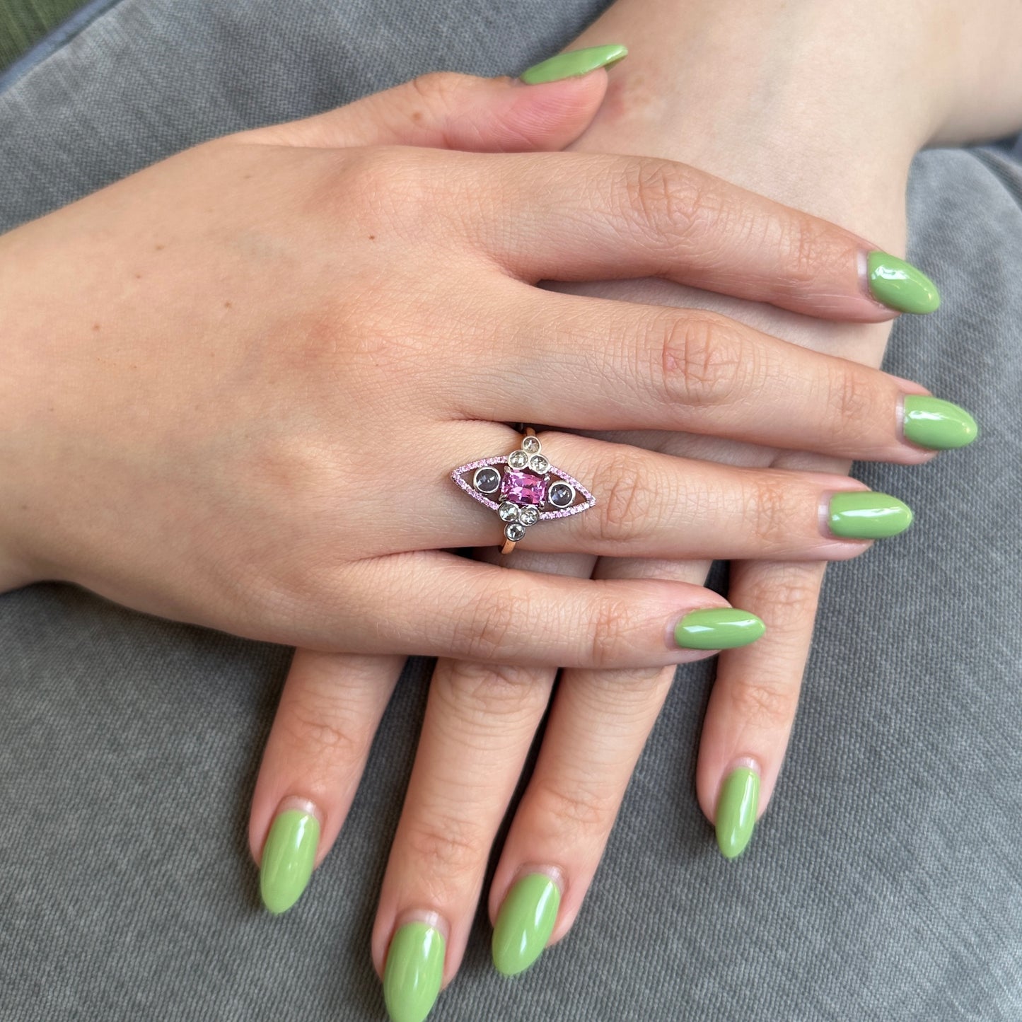1.16ct Pink Sapphire Blue Sapphire & Diamond Cocktail Statement or Engagement Ring set in 18k Yellow and White Gold
