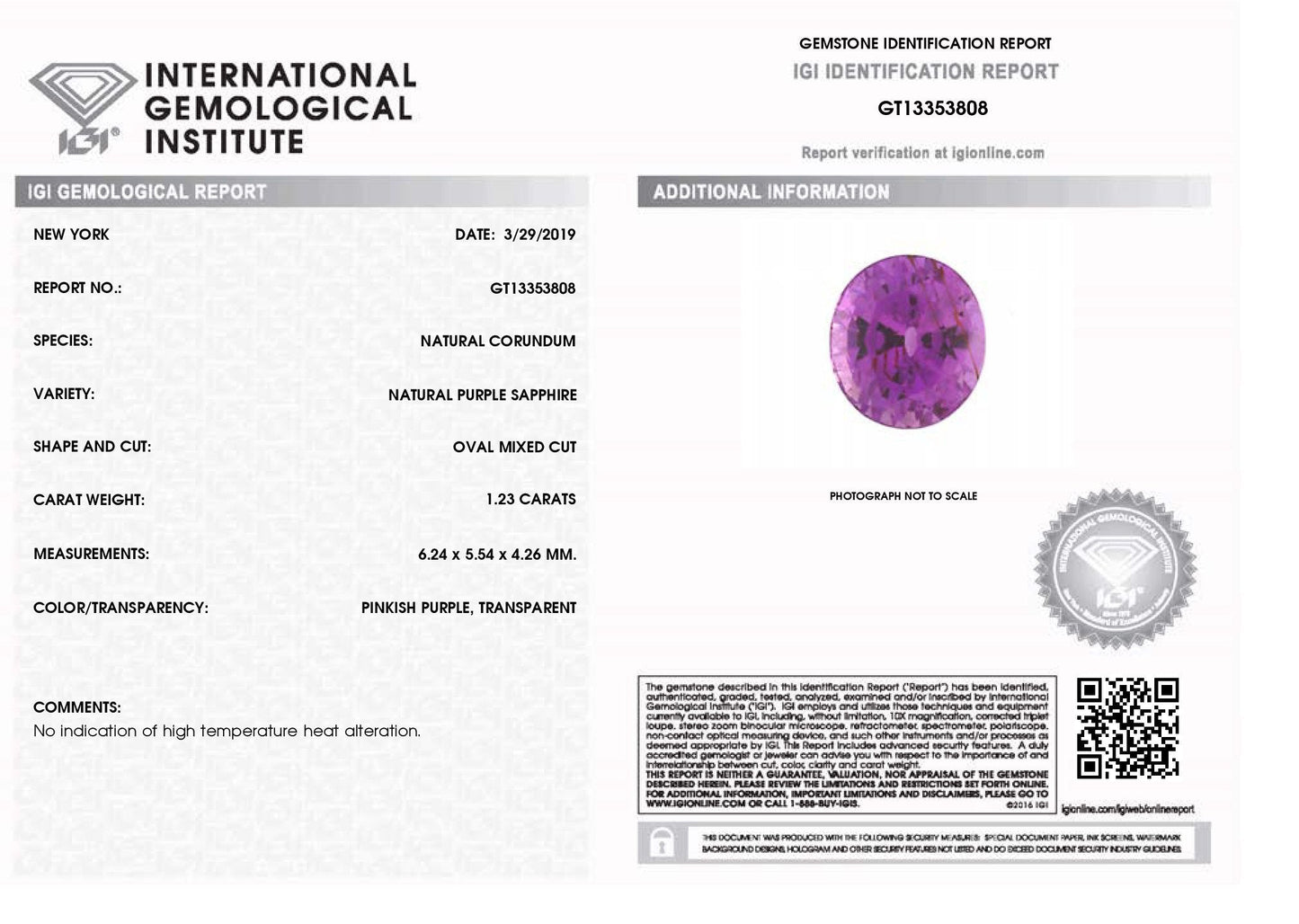 1.23ct Vivid Pinkish Purple Sapphire Oval IGI Certified