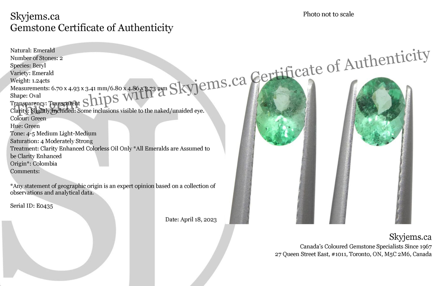 Treatment: Clarity Enhanced Colorless Oil Only *All Emeralds are Assumed to be Clarity Enhanced