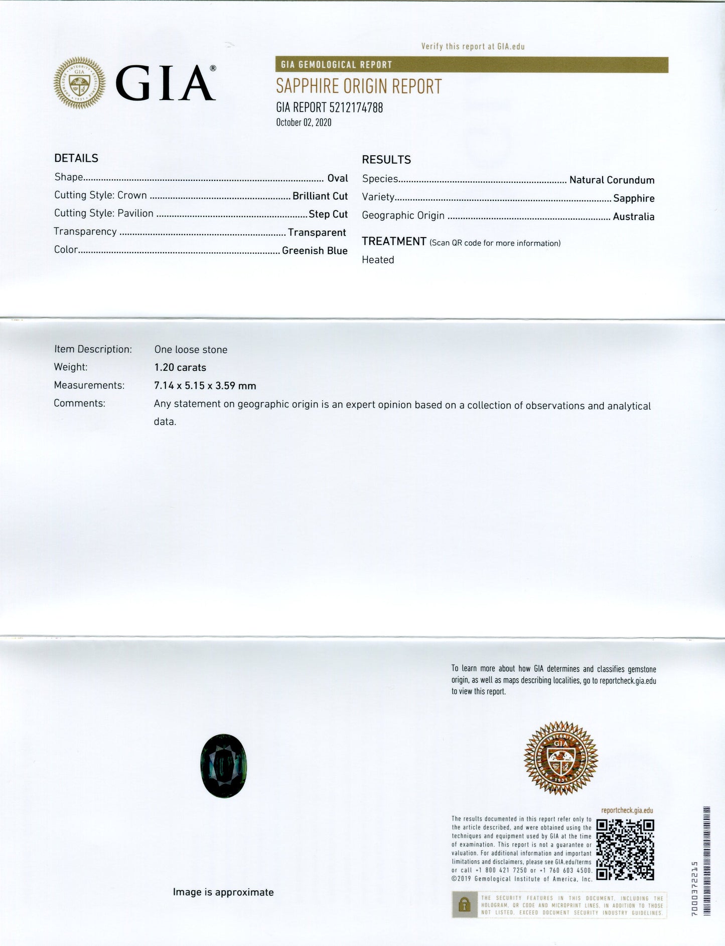 1.2ct Oval Teal Blue Sapphire GIA Certified Australian