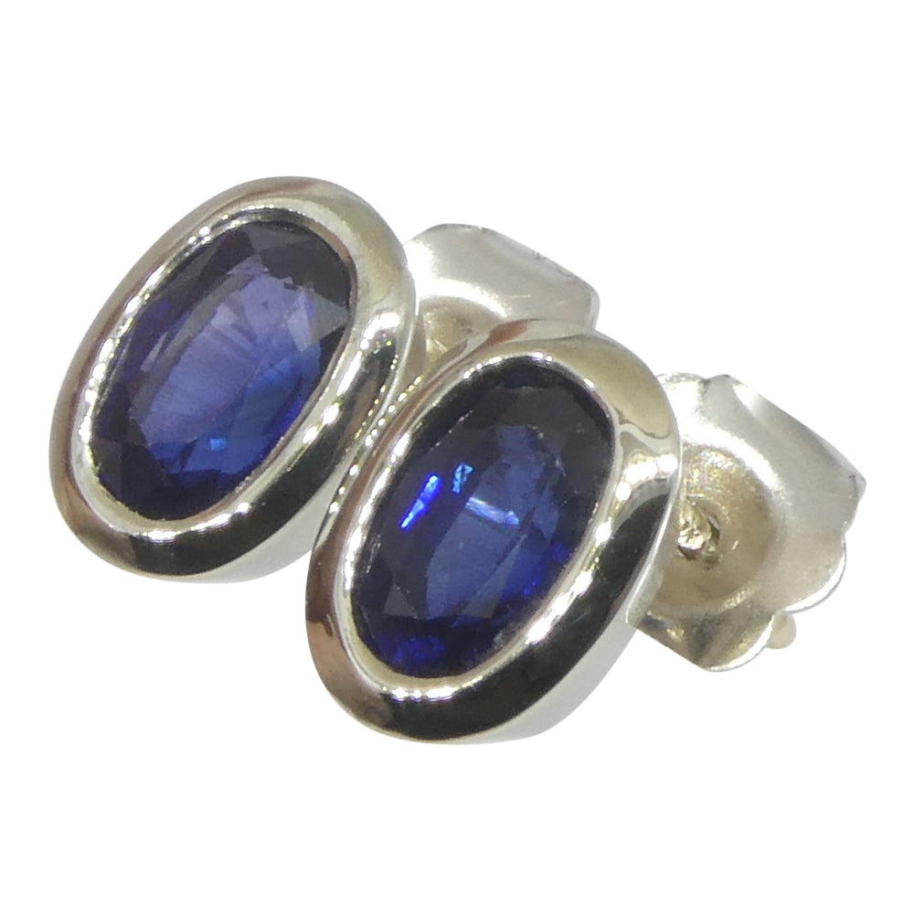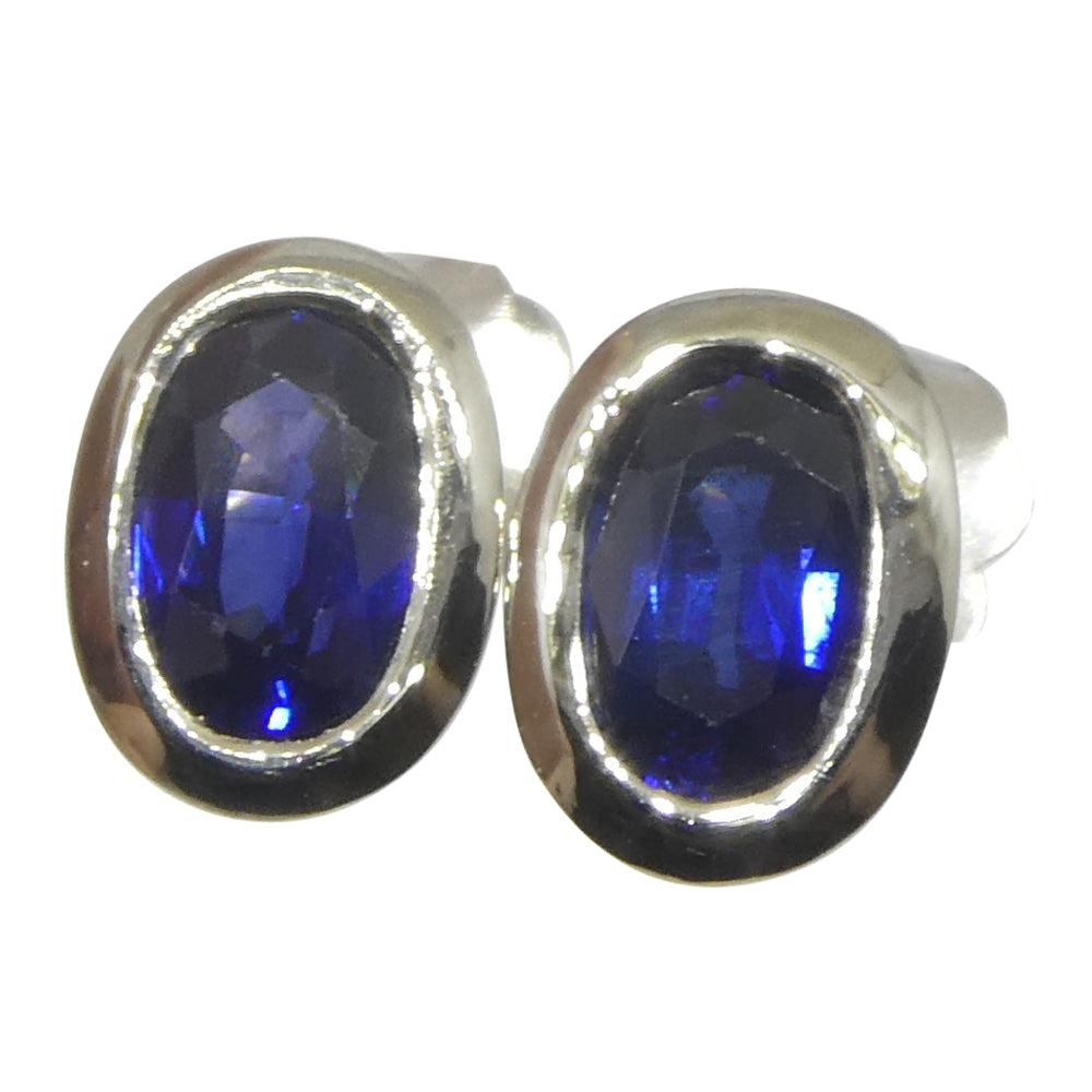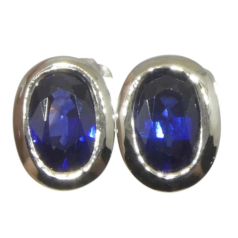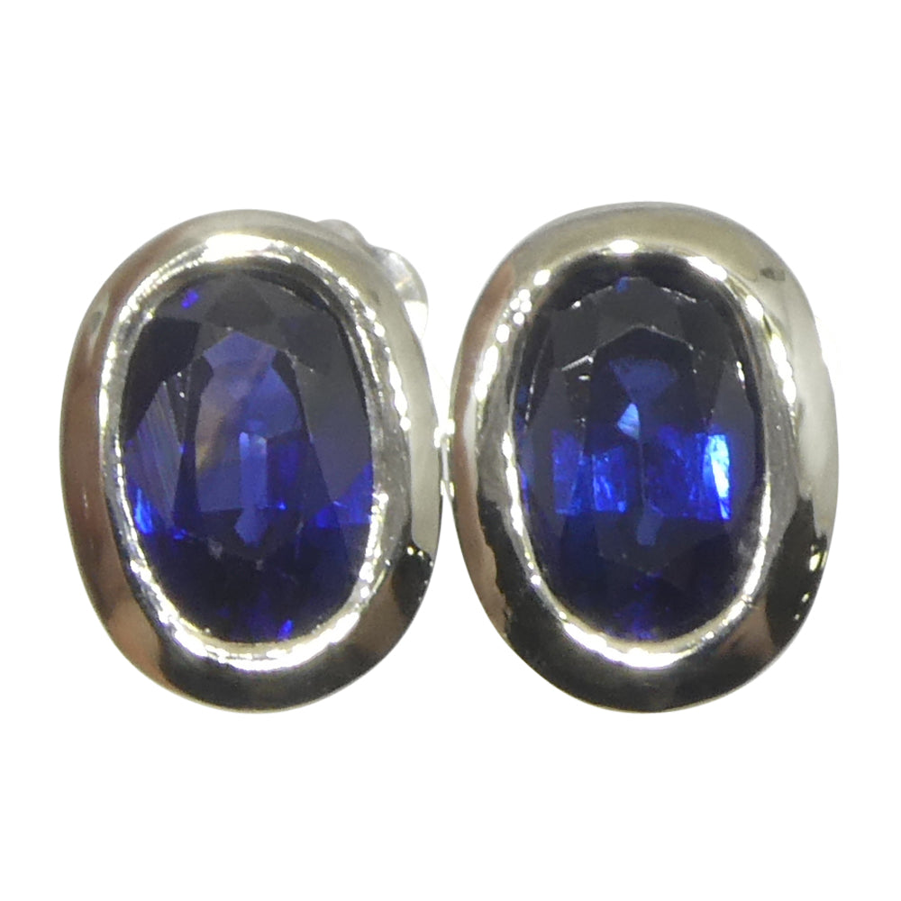 1.32ct Oval Blue Sapphire Stud Earrings set in 14k White Gold