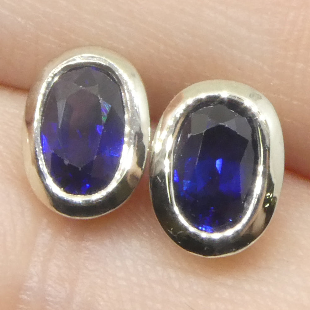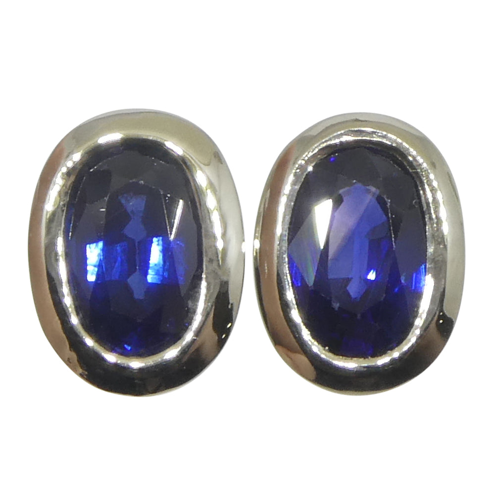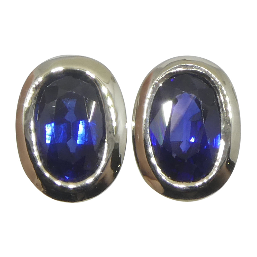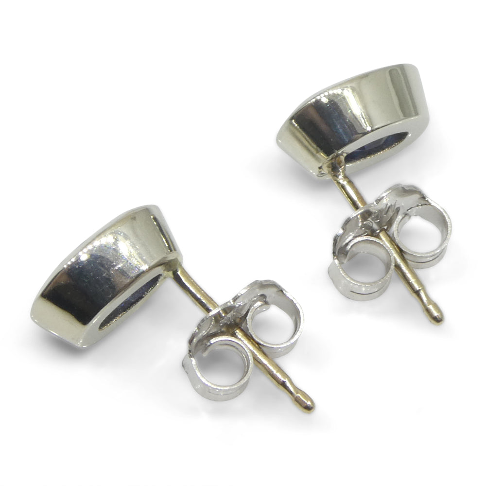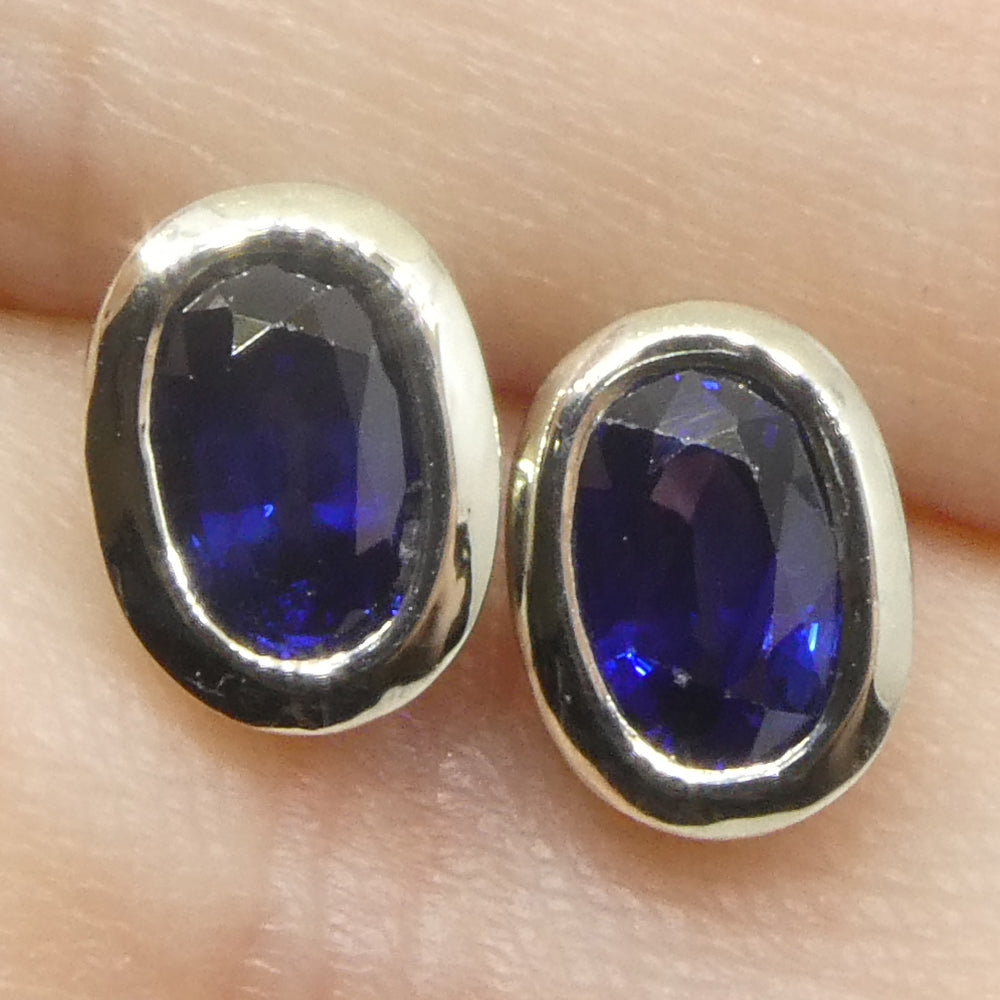 1.32ct Oval Blue Sapphire Stud Earrings set in 14k White Gold