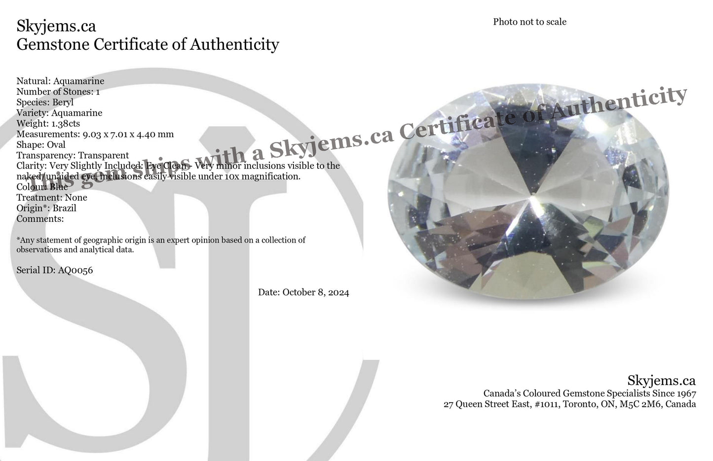 1.38ct Oval Blue Aquamarine from Brazil Unheated