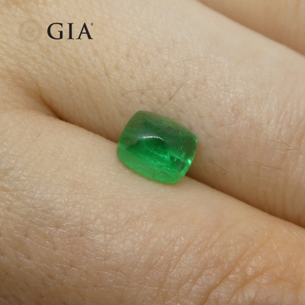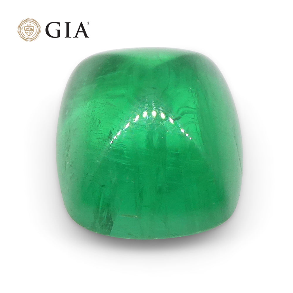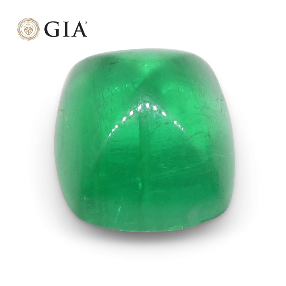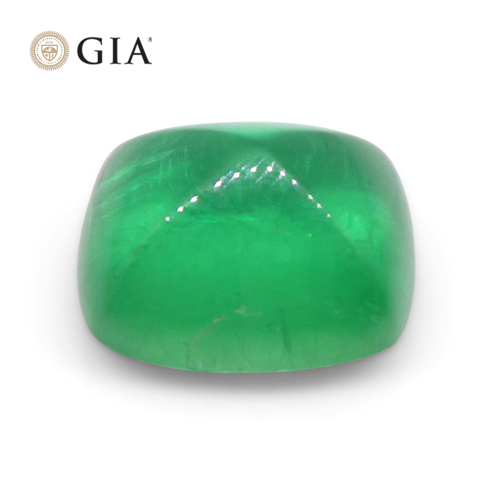 1.41ct Cushion Sugarloaf Double Cabochon Green Emerald GIA Certified Brazil