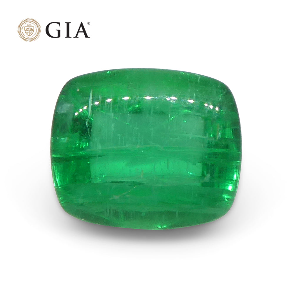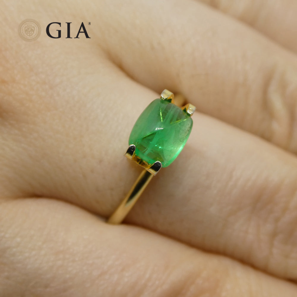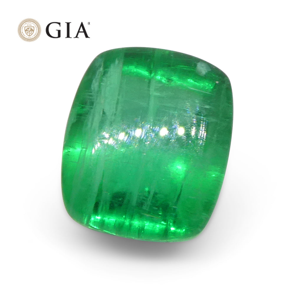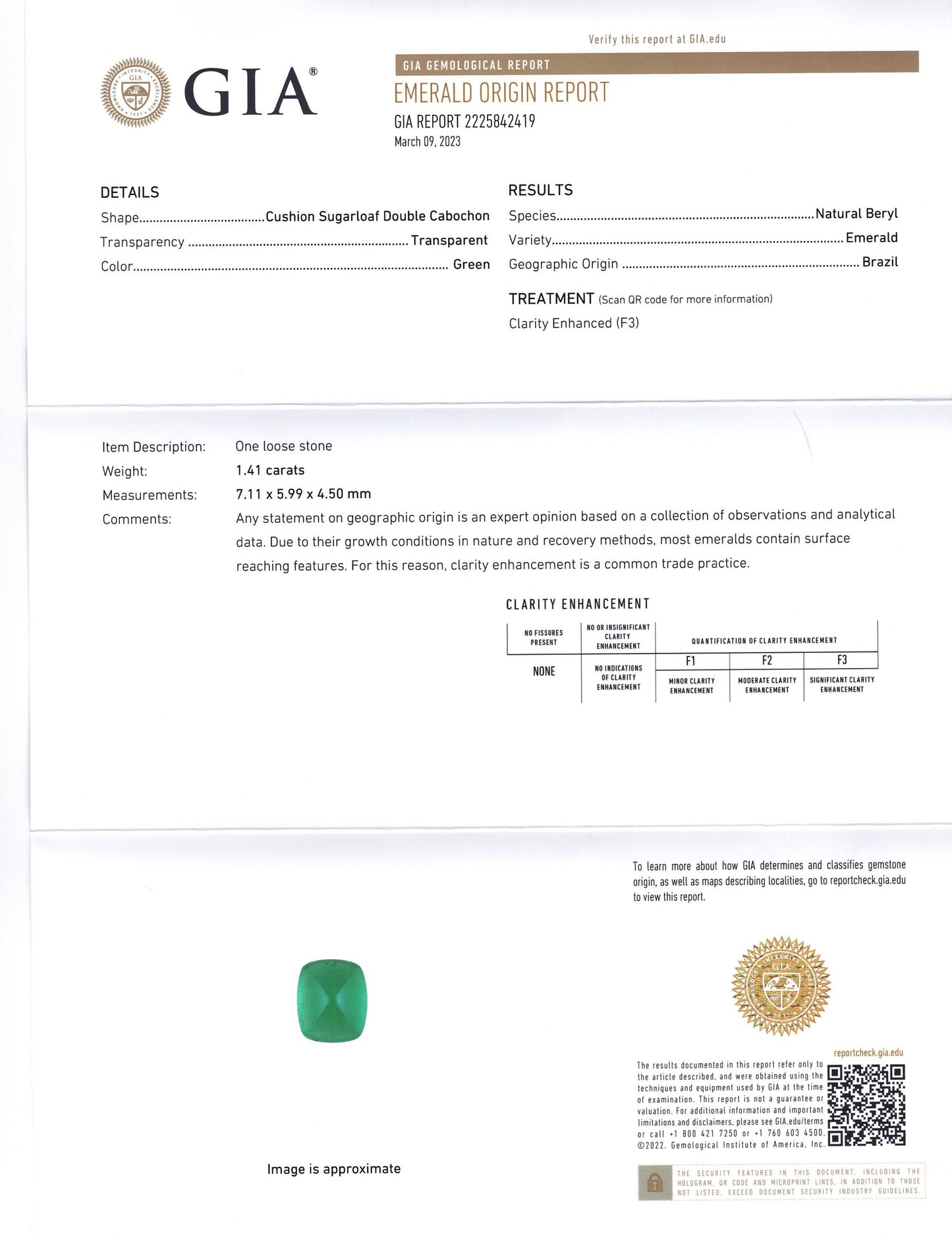 1.41ct Cushion Sugarloaf Double Cabochon Green Emerald GIA Certified Brazil