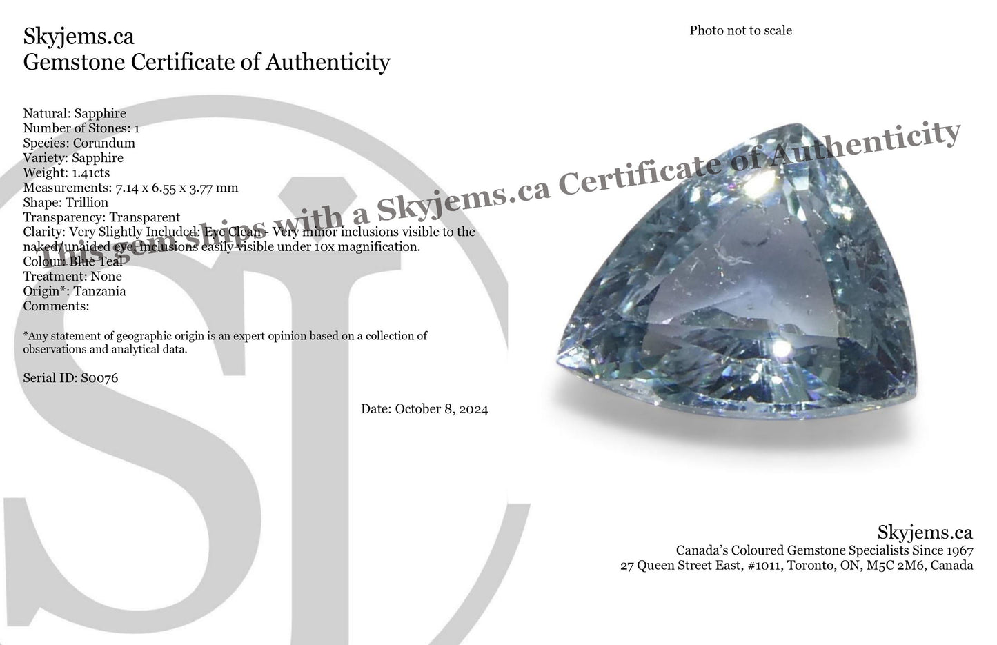 Email linda@skyjems.ca and we’ll send you a complete invoice with all duties & tariffs included, no surprises at checkout