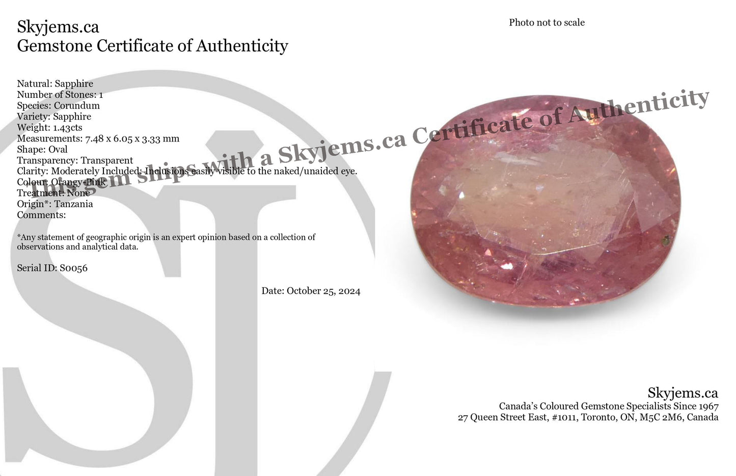 1.43ct Unheated Oval Orangy-Pink Padparadscha Sapphire from Tanzania, Unheated