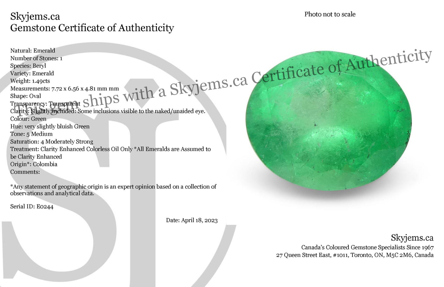 Treatment: Clarity Enhanced Colorless Oil Only *All Emeralds are Assumed to be Clarity Enhanced