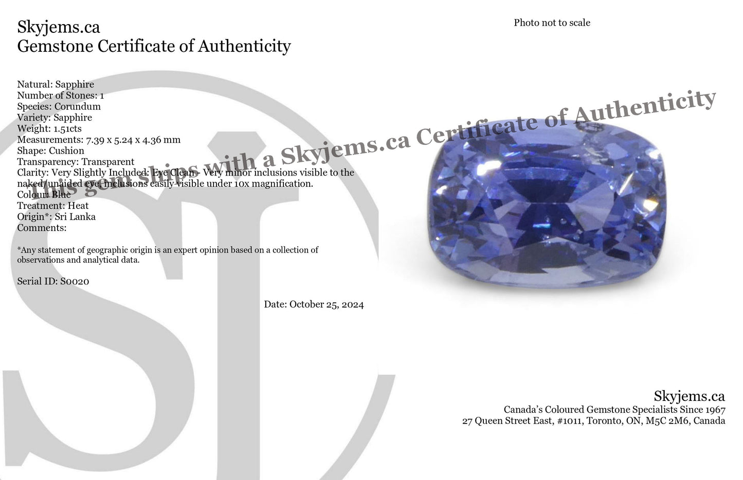 1.51ct Cushion Blue Sapphire from Sri Lanka