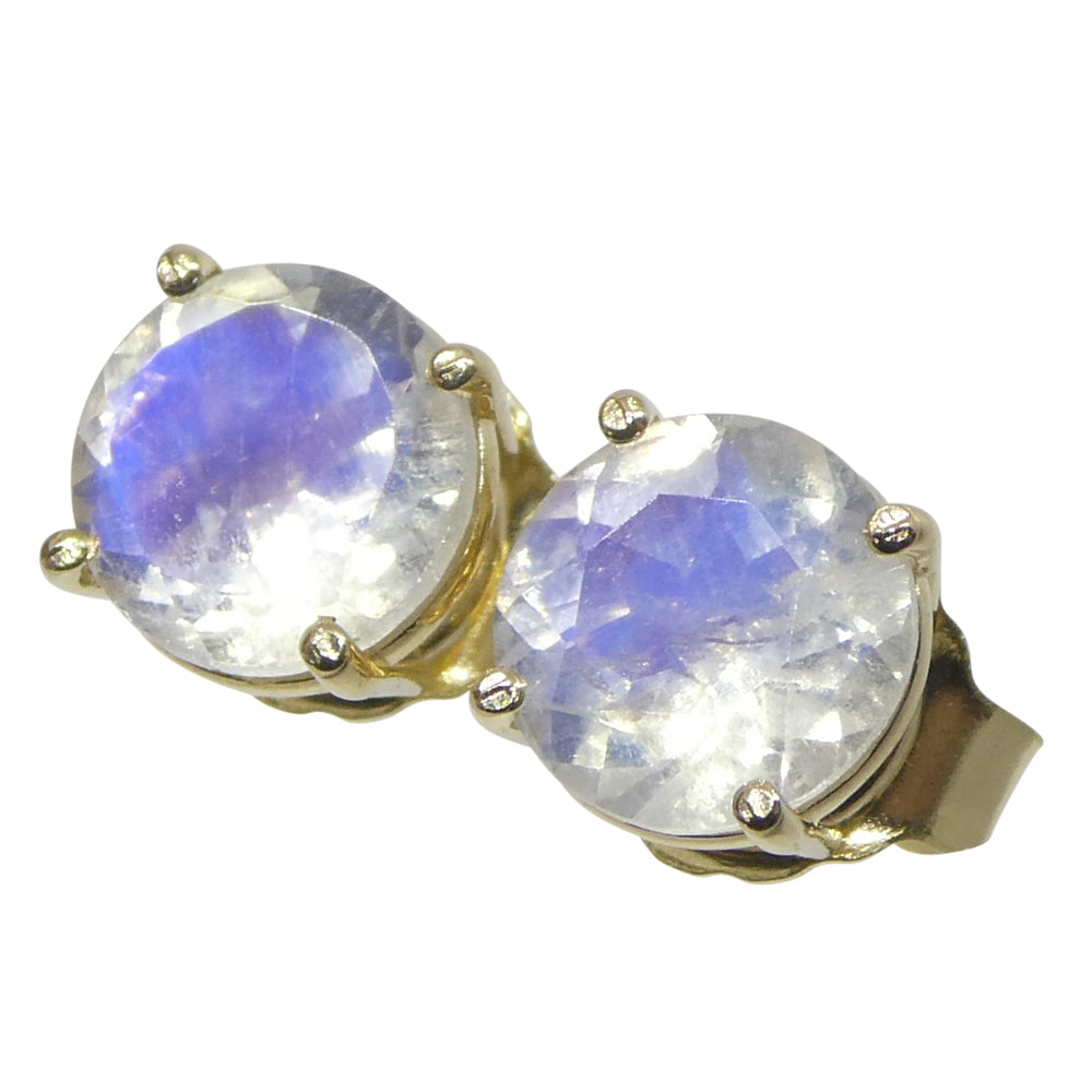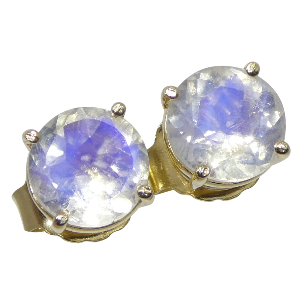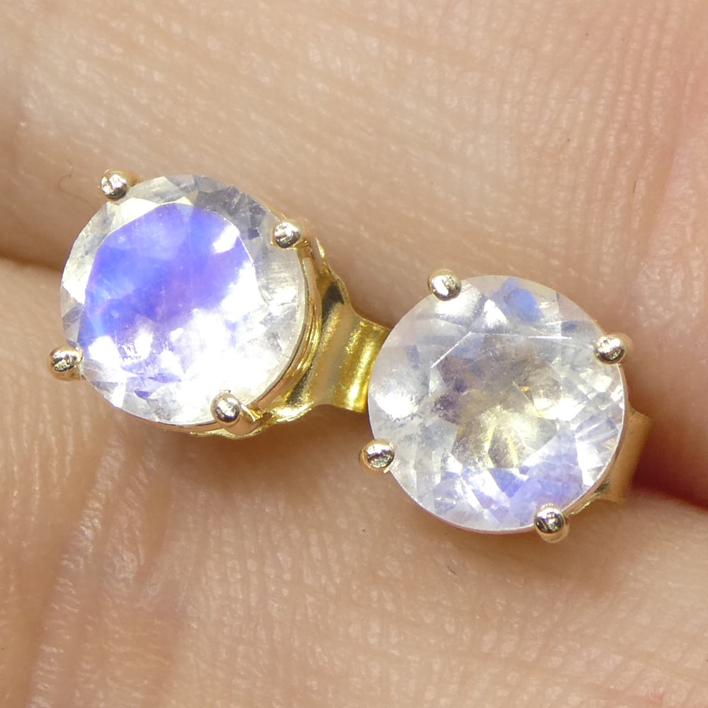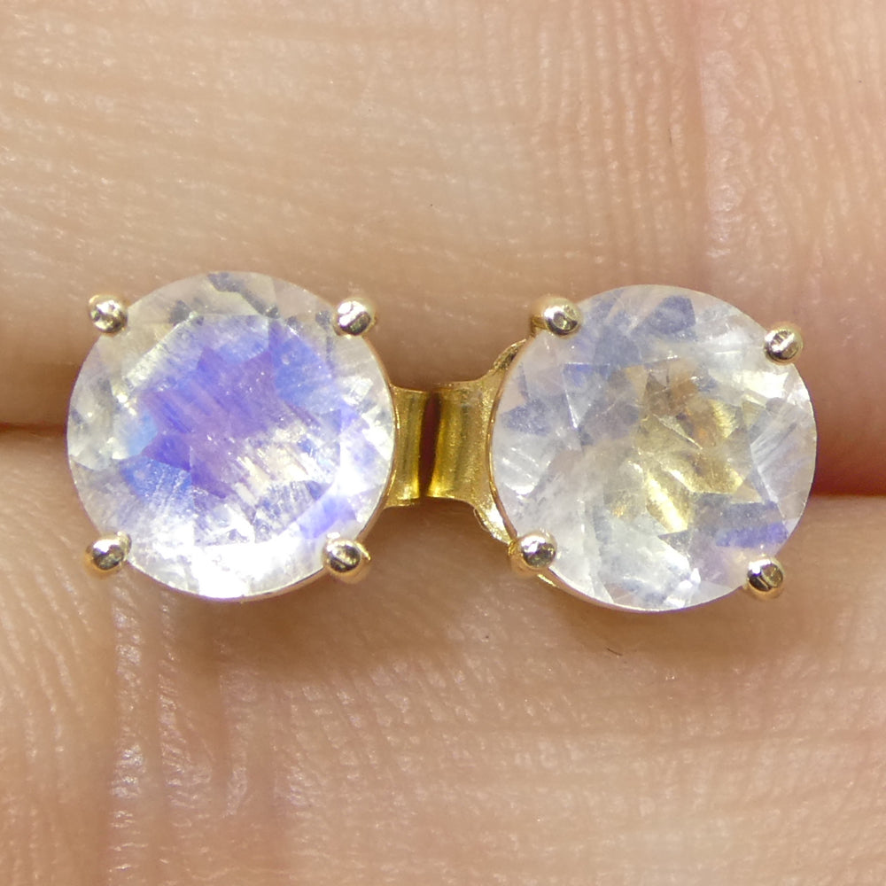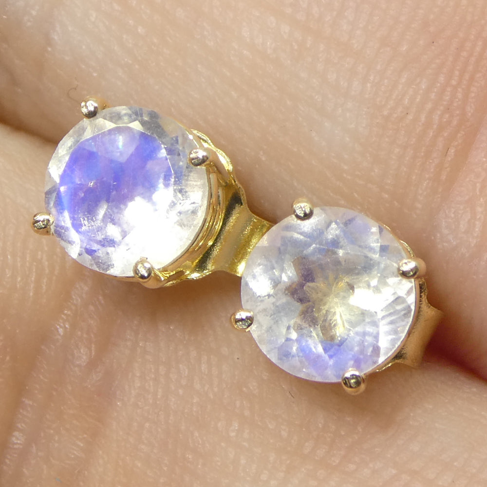 1.51ct Round Rainbow Moonstone Stud Earrings set in 14k Yellow Gold