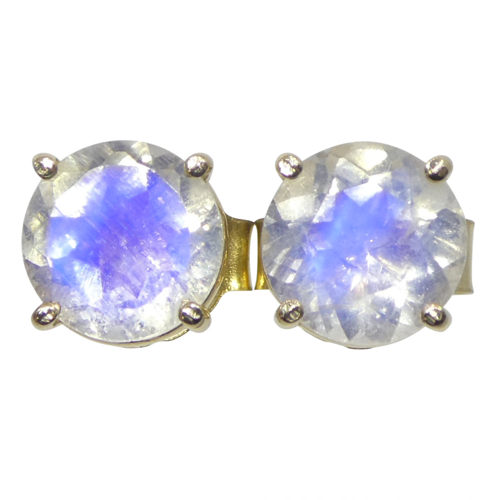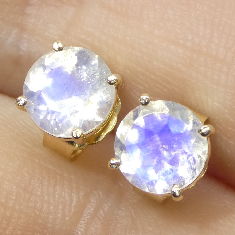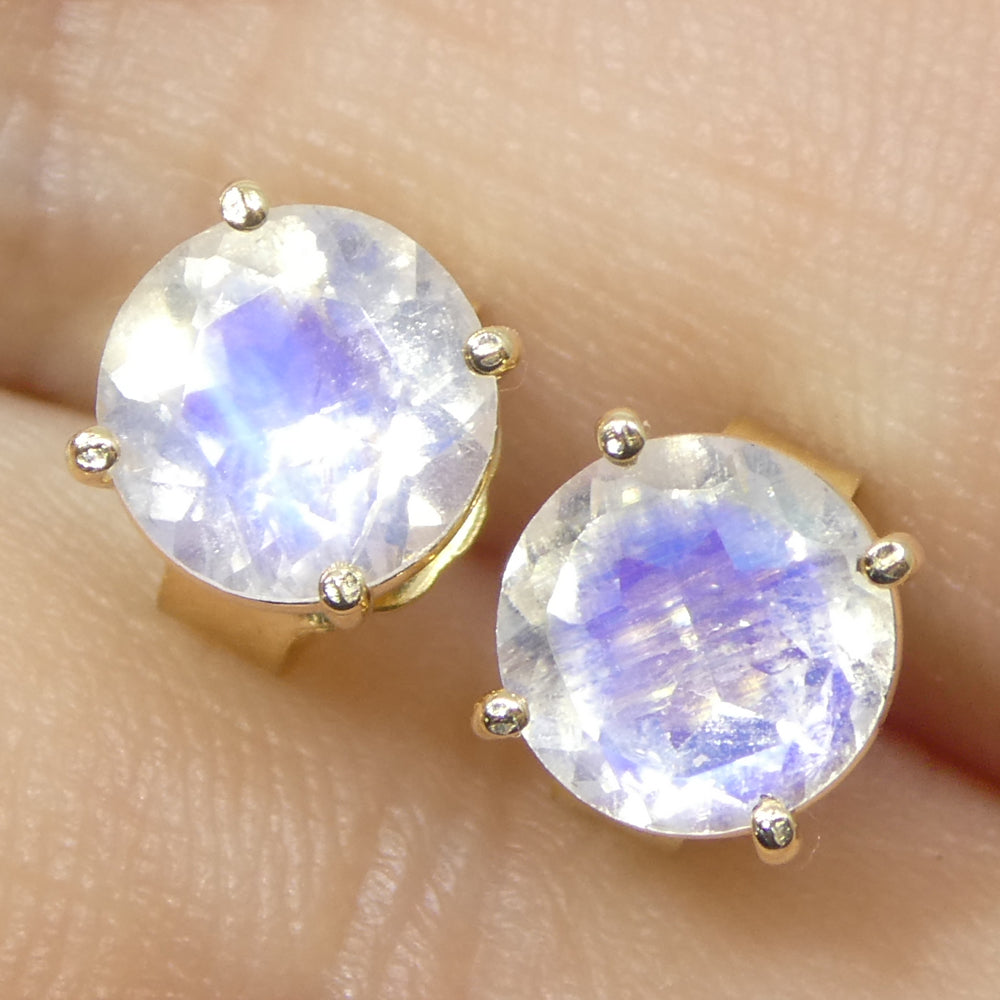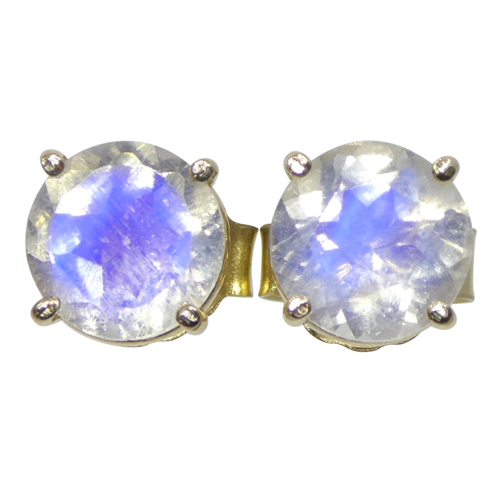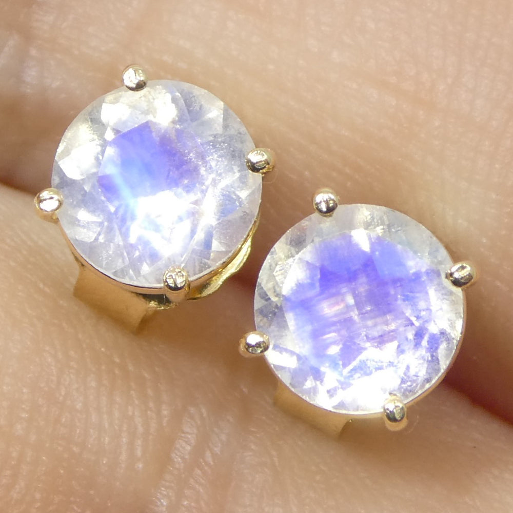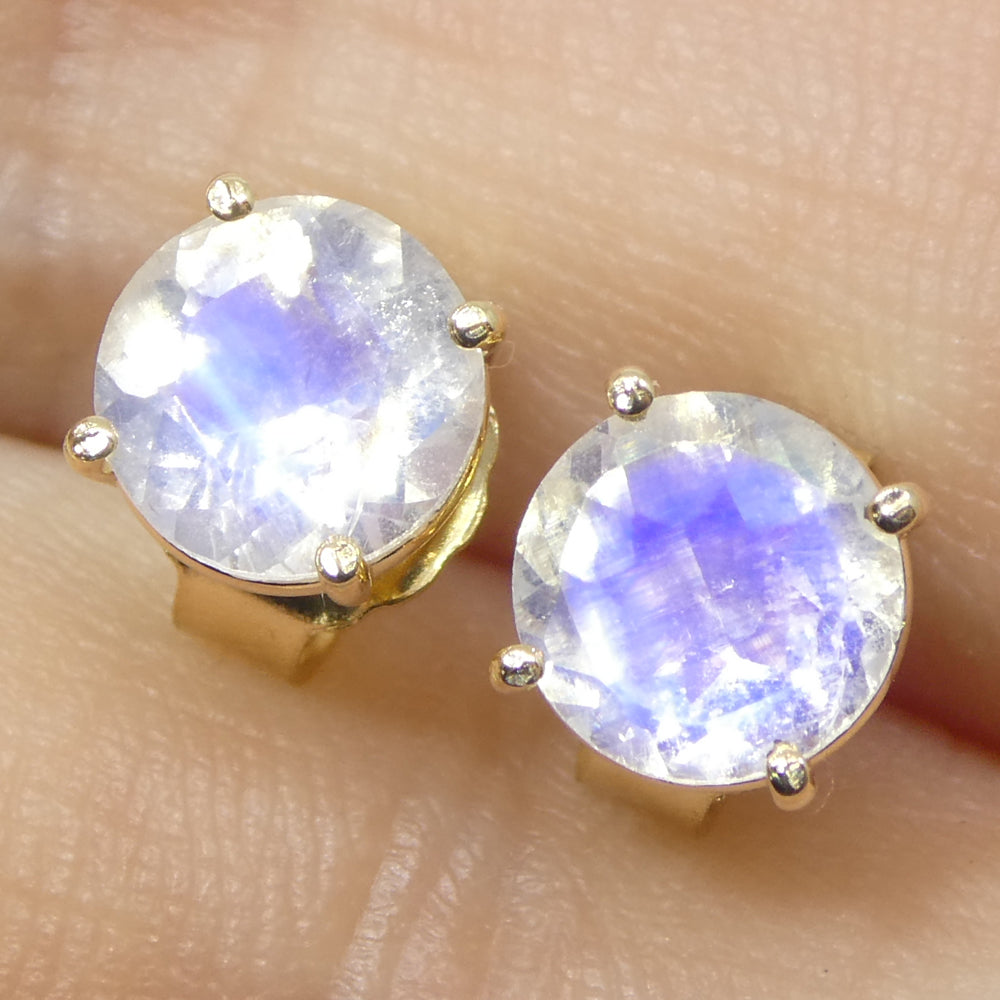 1.51ct Round Rainbow Moonstone Stud Earrings set in 14k Yellow Gold