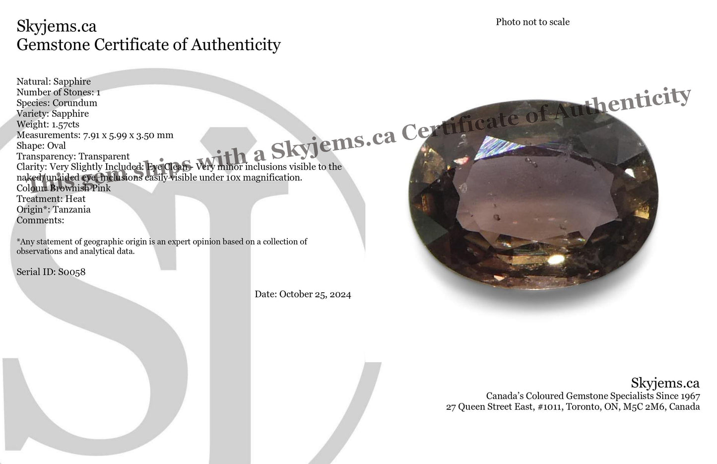 1.57ct Oval Brownish Pink Sapphire from Tanzania