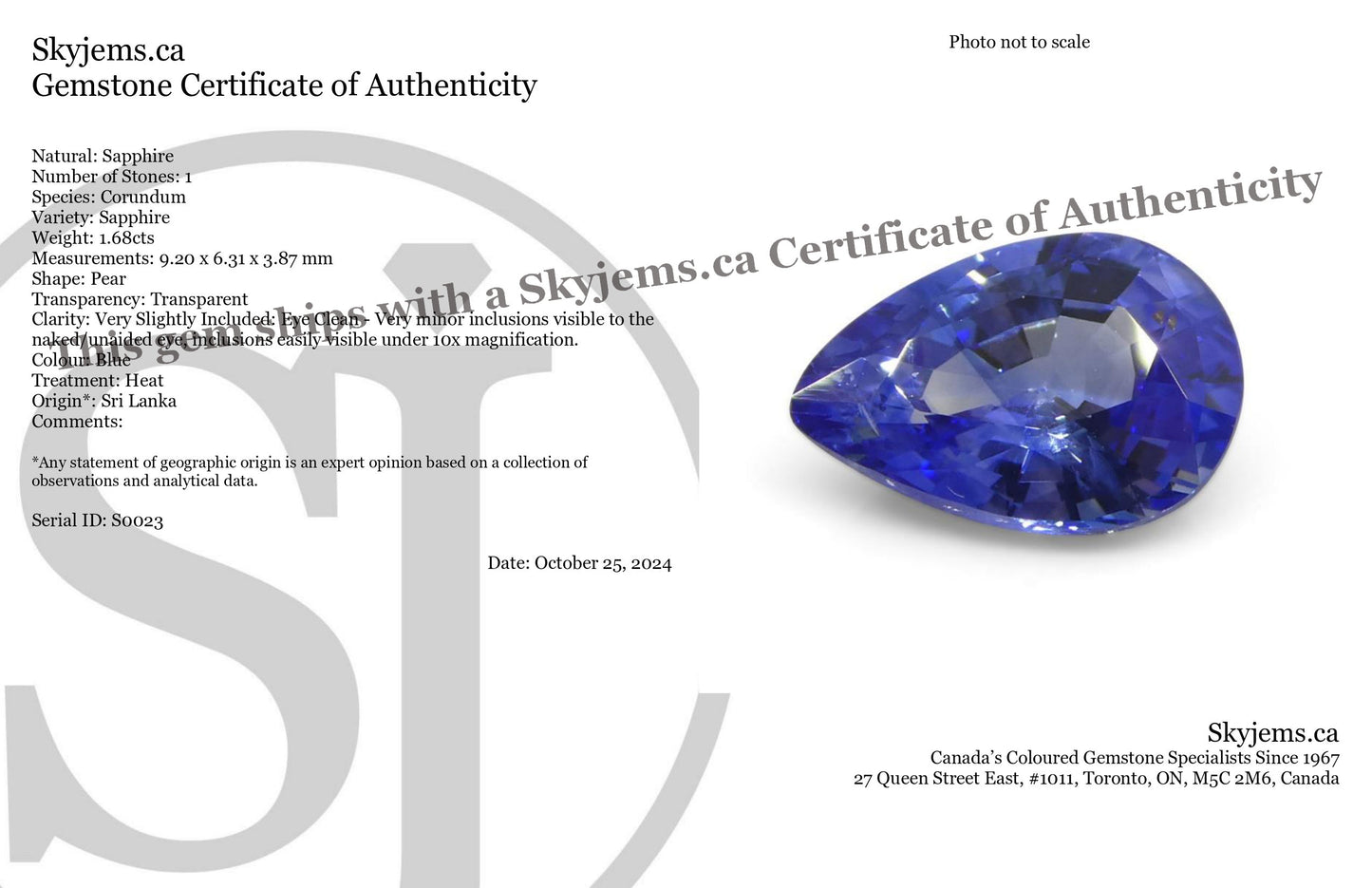 1.68ct Pear Blue Sapphire from Sri Lanka