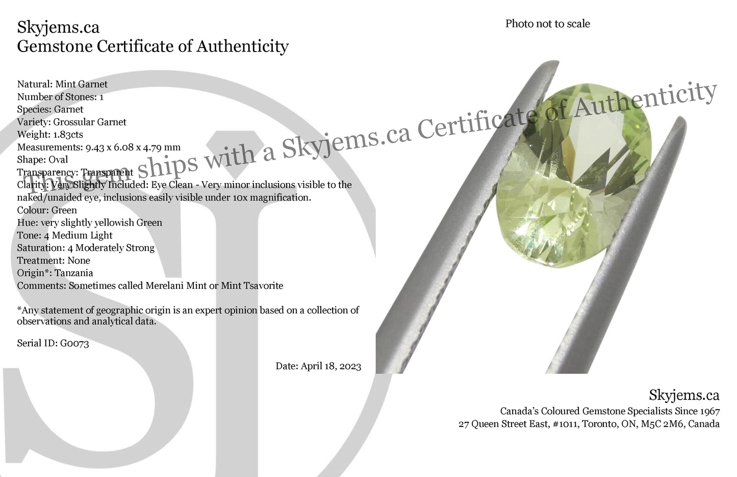 1.83ct Oval Green Merelani Mint Tsavorite Garnet from Tanzania