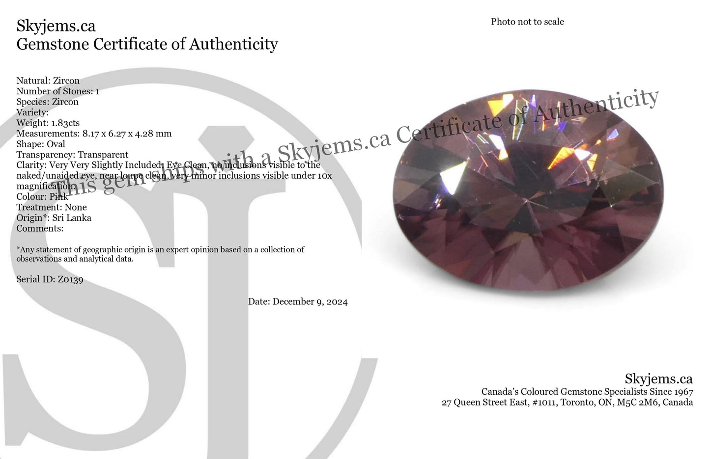 1.83ct Natural Earth Mined Oval Master Brilliant Cut Pink Zircon from Sri Lanka