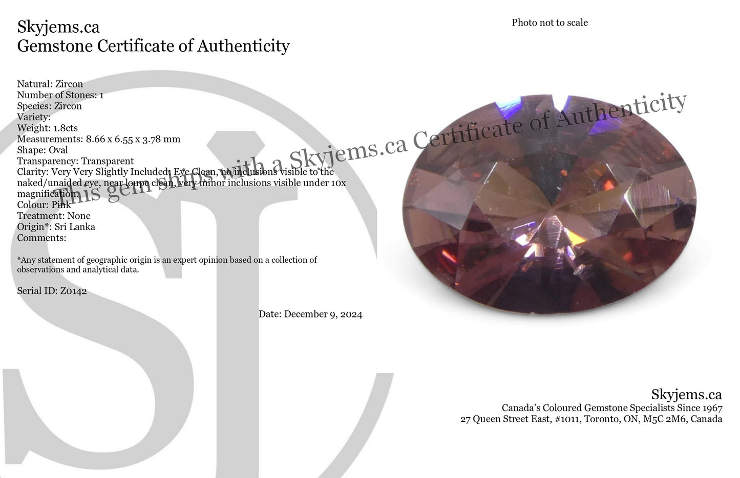1.8ct Natural Earth Mined Oval Master Brilliant Cut Pink Zircon from Sri Lanka