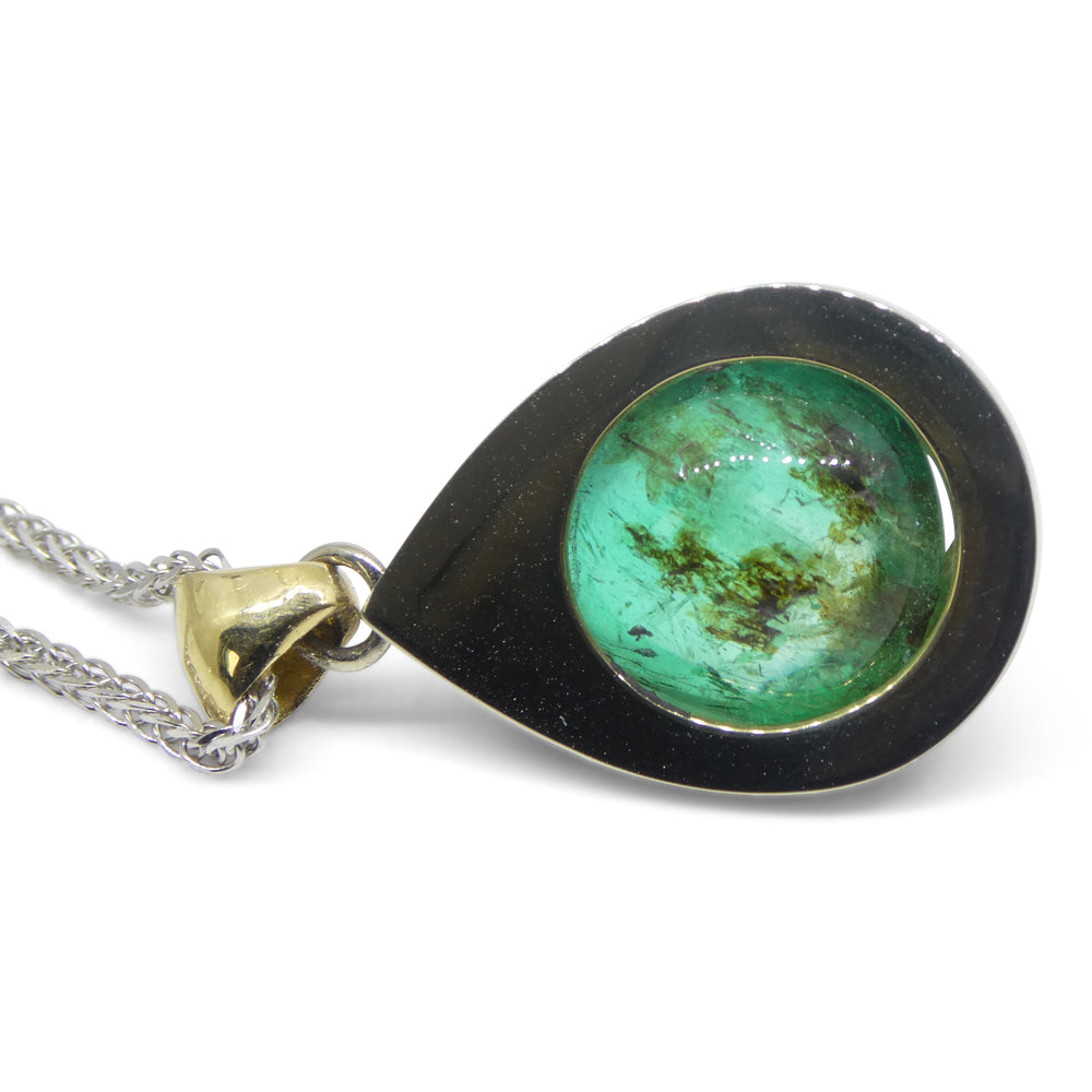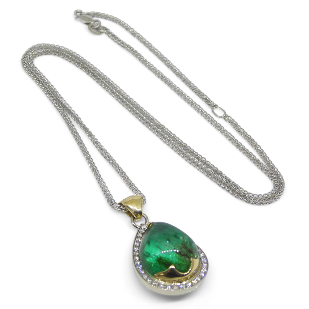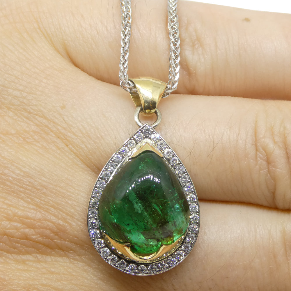 11.85ct Pear Cabochon Emerald, Diamond Pendant set in 14k White and Yellow Gold