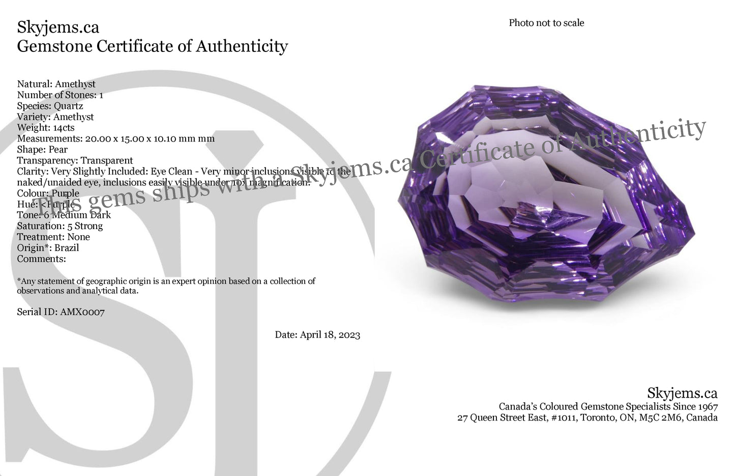 Email linda@skyjems.ca and we’ll send you a complete invoice with all duties & tariffs included, no surprises at checkout
